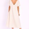 Abito tunica dal design essenziale e contemporaneo, pensato per una donna sofisticata e dinamica. Lo scollo a V valorizza il décolleté con eleganza, mentre le maniche corte donano leggerezza e comfort, rendendolo ideale per la stagione più calda.