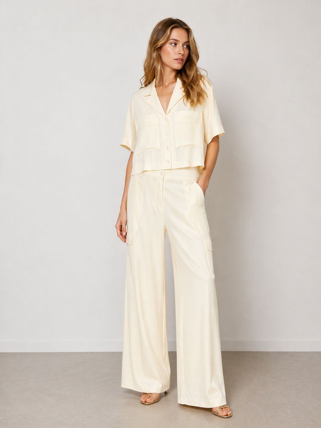 Camicia da donna a maniche corte con tasconi frontali, pensata per un look moderno e funzionale. Realizzata in tessuto leggero e traspirante, garantisce comfort durante le giornate più calde mantenendo uno stile pulito e strutturato. I tasconi frontali aggiungono un dettaglio deciso e pratico, perfetto per valorizzare outfit casual e contemporanei. Facile da abbinare a pantaloni, gonne o denim, è un capo versatile e indispensabile per la stagione primavera estate.