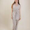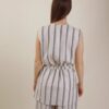 Gilet lungo senza maniche a righe con coulisse in vita, ideale per look estivi casual-chic. il taglio morbido e la fantasia a righe lo rendono un capo versatile, da proporre sia come top che come sopracapo leggero. perfetto per boutique che cercano capi freschi e contemporanei, con uno stile rilassato ma curato nei dettagli.