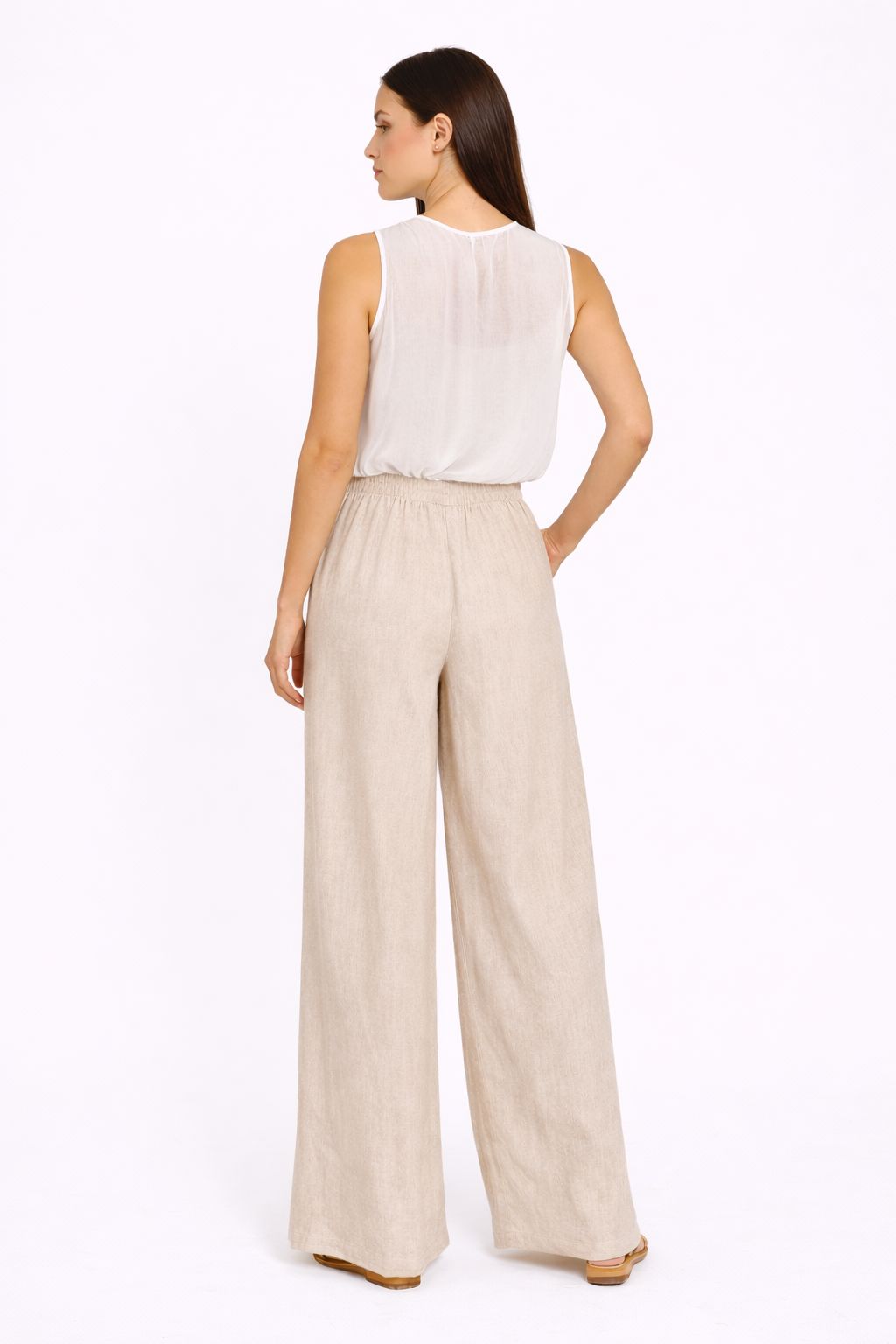 Il taglio morbido e il drappeggio frontale creano movimento e femminilità, rendendola perfetta sia per outfit casual chic che per abbinamenti più ricercati. La linea pulita sul retro bilancia il design, garantendo un’estetica minimal e versatile.