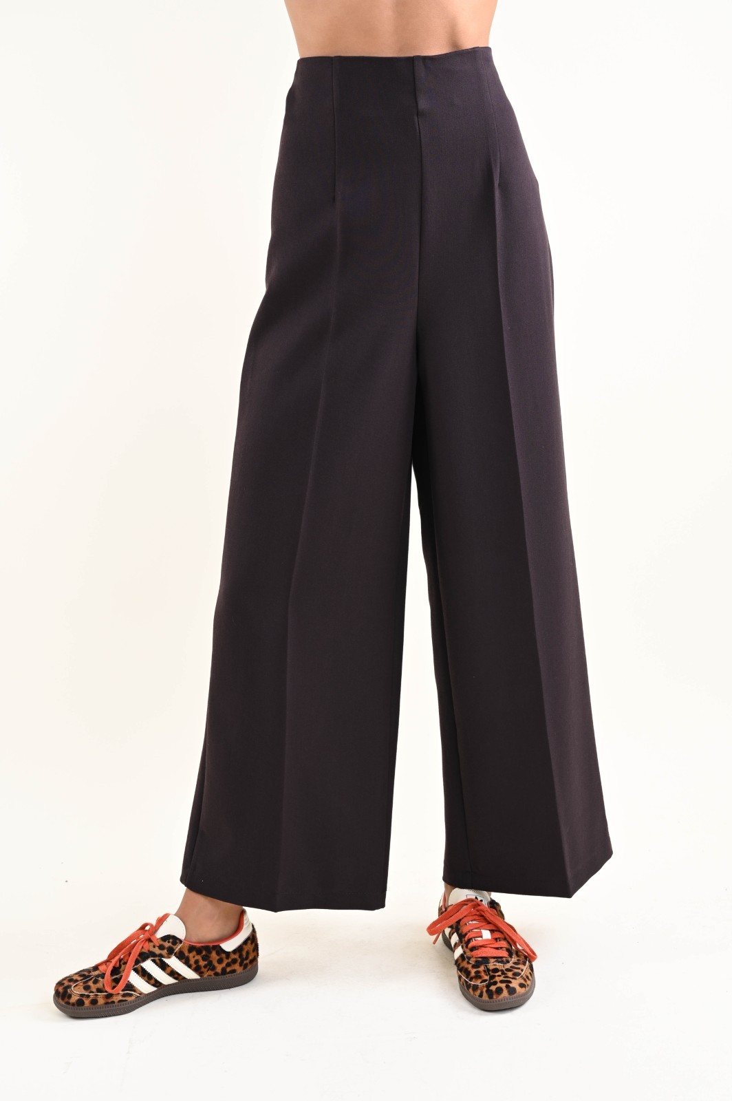 Un classico senza tempo reinterpretato in chiave contemporanea. Questi pantaloni culotte Myastreet presentano una linea morbida con pinces frontali che slanciano la figura e assicurano una vestibilità confortevole. Perfetti da abbinare a blazer coordinati o a maglie morbide per un look sofisticato e versatile.