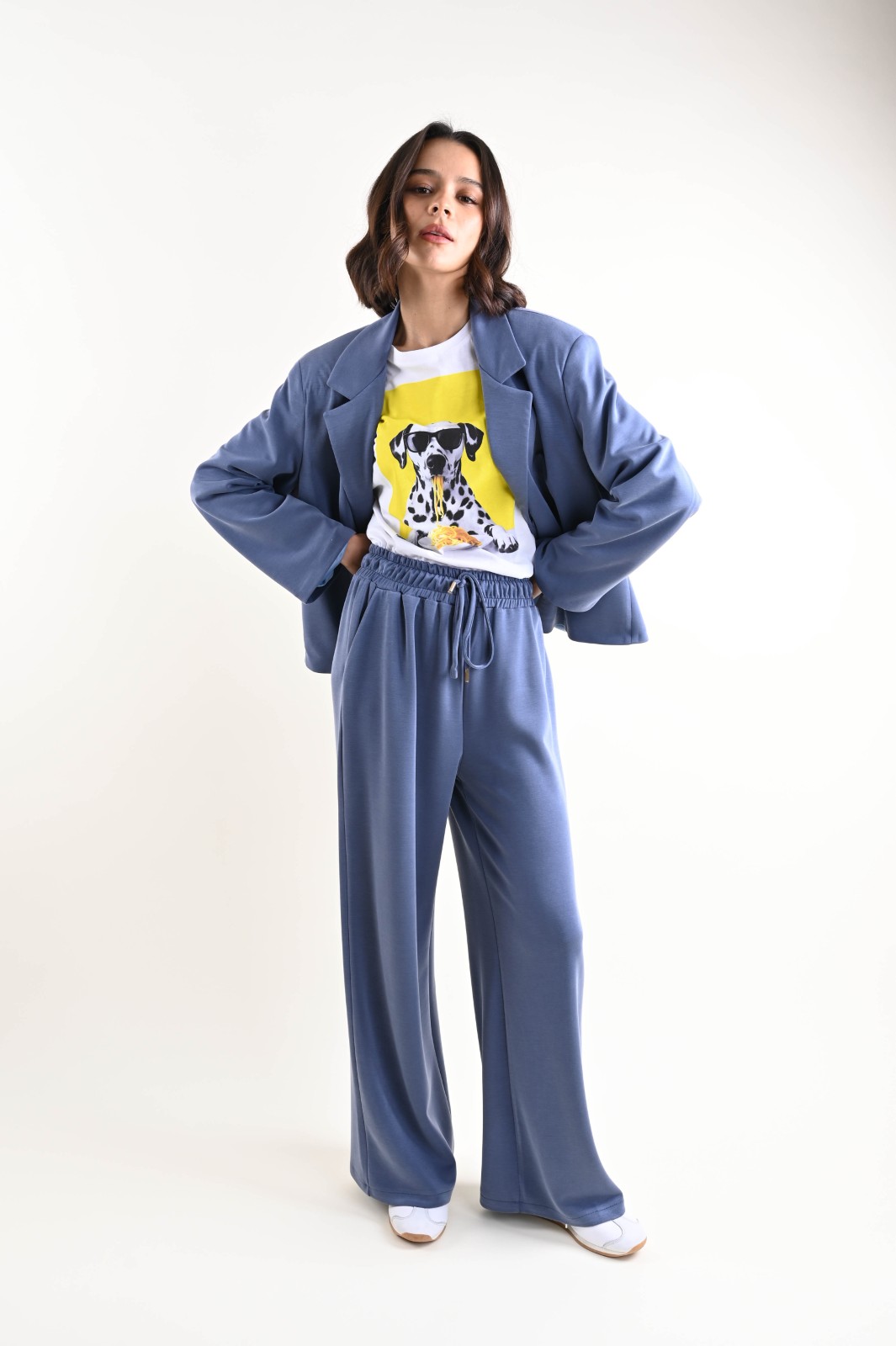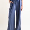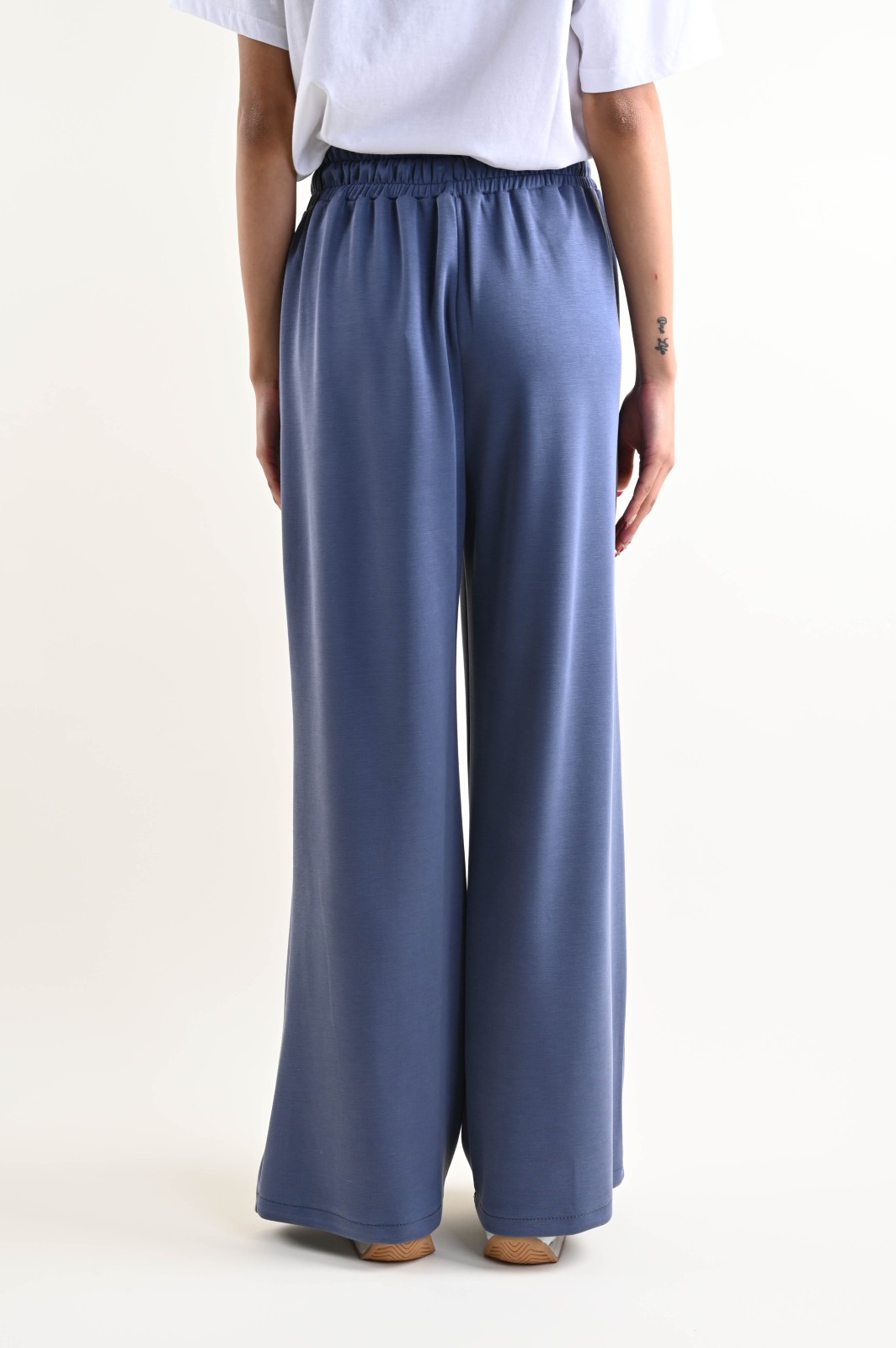 Pantaloni a palazzo in viscosa fluidi con coulisse e tasche laterali a filetto. Il taglio morbido accompagna il movimento del corpo, rendendo il capo ideale per creare look versatili, dal quotidiano al più ricercato.