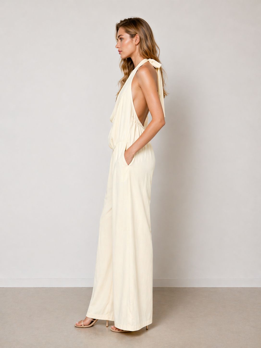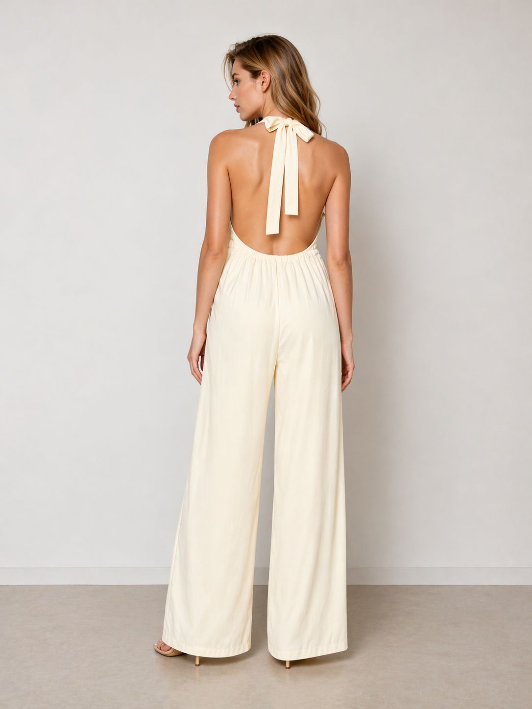 Tuta estiva da donna in cotone con collo all’americana e spalle scoperte, perfetta per un look fresco e contemporaneo. Realizzata in tessuto leggero e traspirante, questa tuta garantisce comfort durante le giornate più calde, mantenendo uno stile elegante e versatile. Il design con scollo halter valorizza la silhouette e lascia le spalle scoperte, aggiungendo un tocco femminile e raffinato. Ideale per outfit casual chic, aperitivi estivi o giornate in città, si abbina facilmente a sandali, sneakers o tacchi. Un capo must-have per la stagione primavera estate.