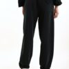 Pantaloni di felpa con elastico in vita, tasche frontali a filetto, una tasca posteriore che presenta un dettaglio decorativo tono su tono, con una lavorazione leggermente sfrangiata.