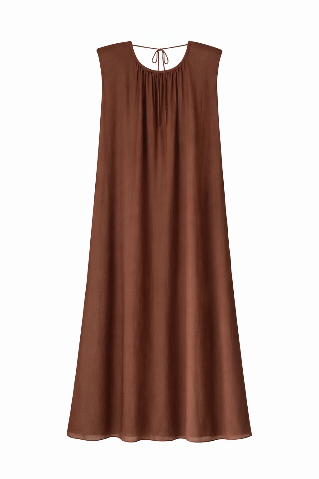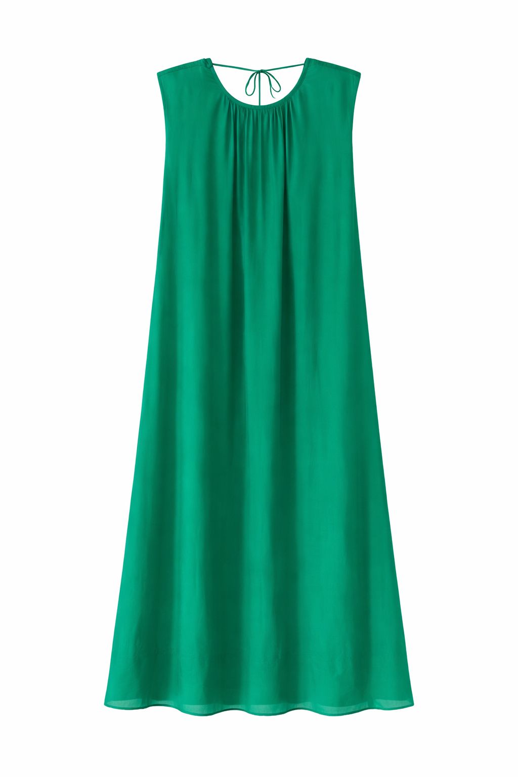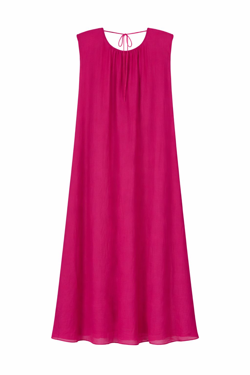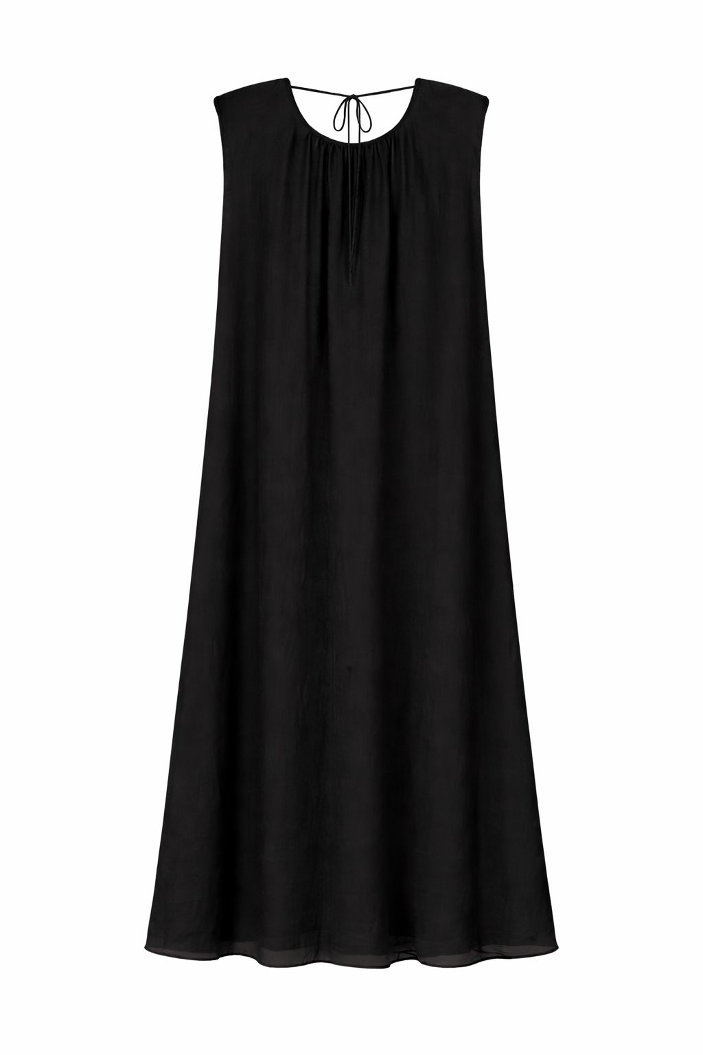 Il tessuto leggero e impalpabile garantisce comfort e vestibilità, rendendo questo abito una scelta strategica per il sell-out grazie alla sua forte identità stilistica e versatilità.