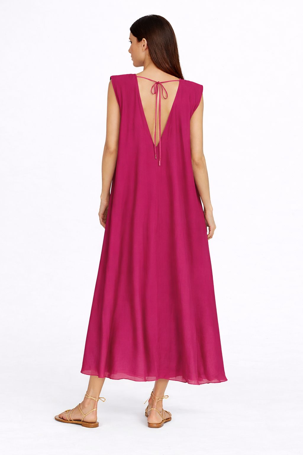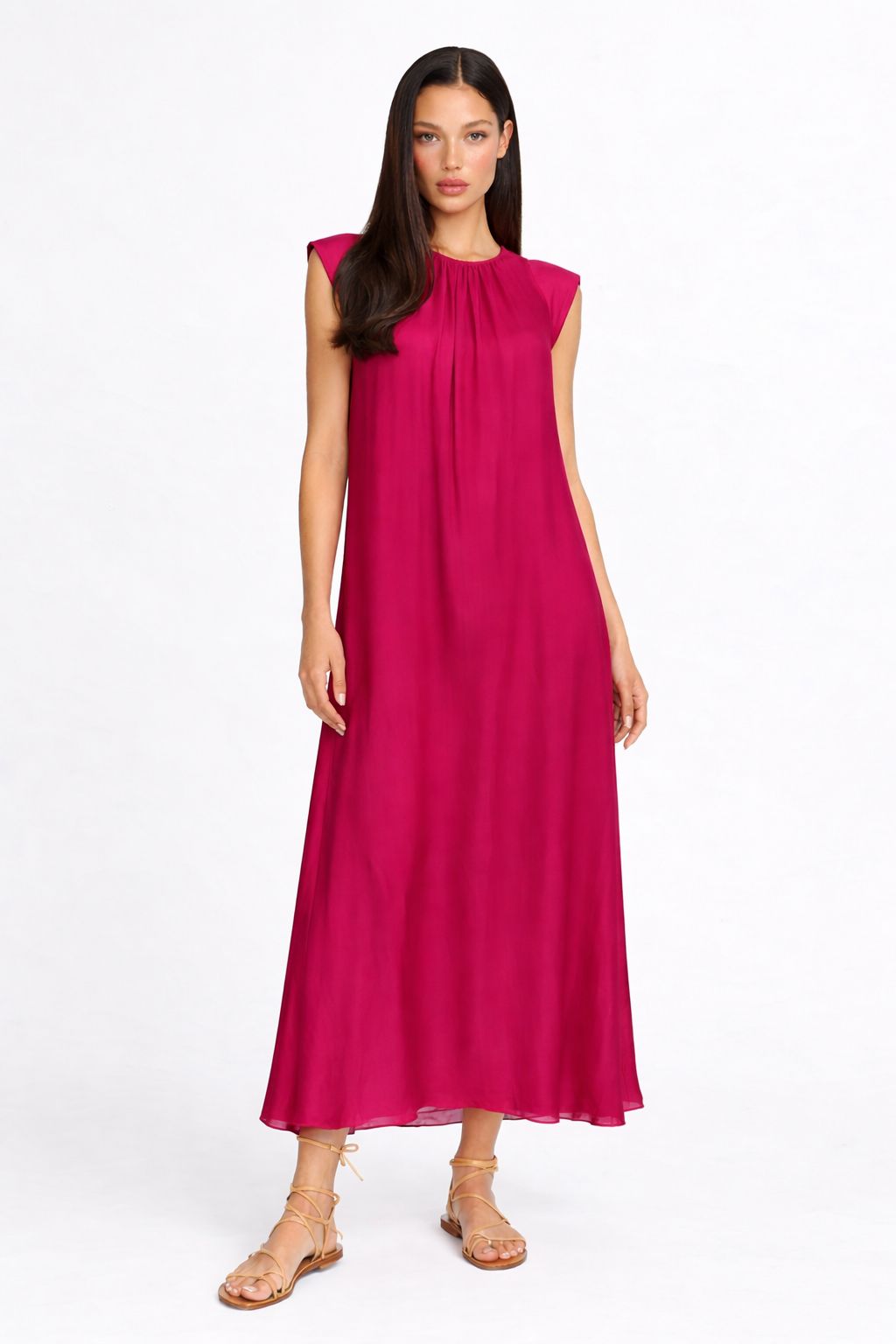 ABITO LUNGO MISTO SETA CON SPALLINE IMBOTTITE E SCOLLO POSTERIORE
