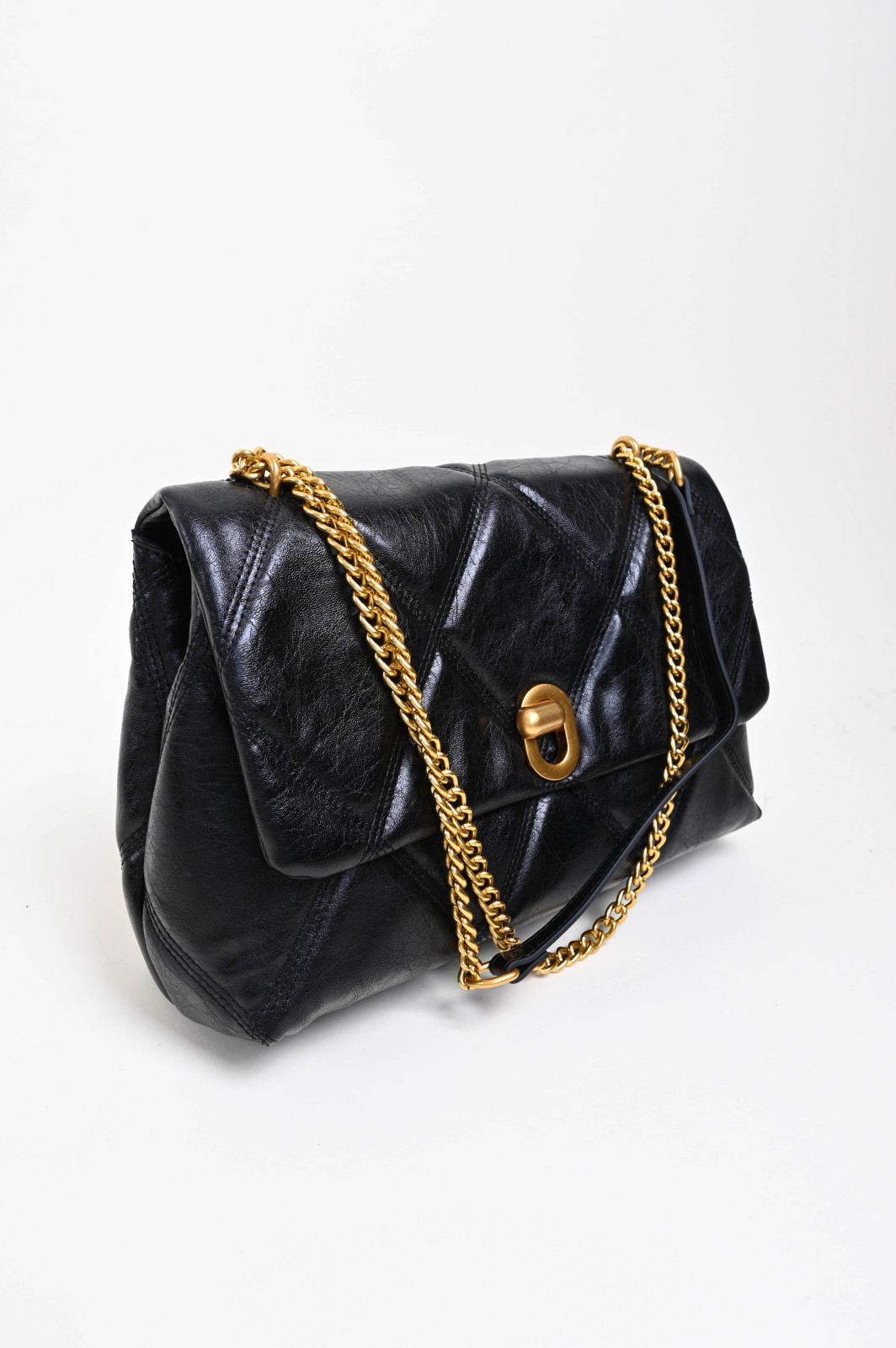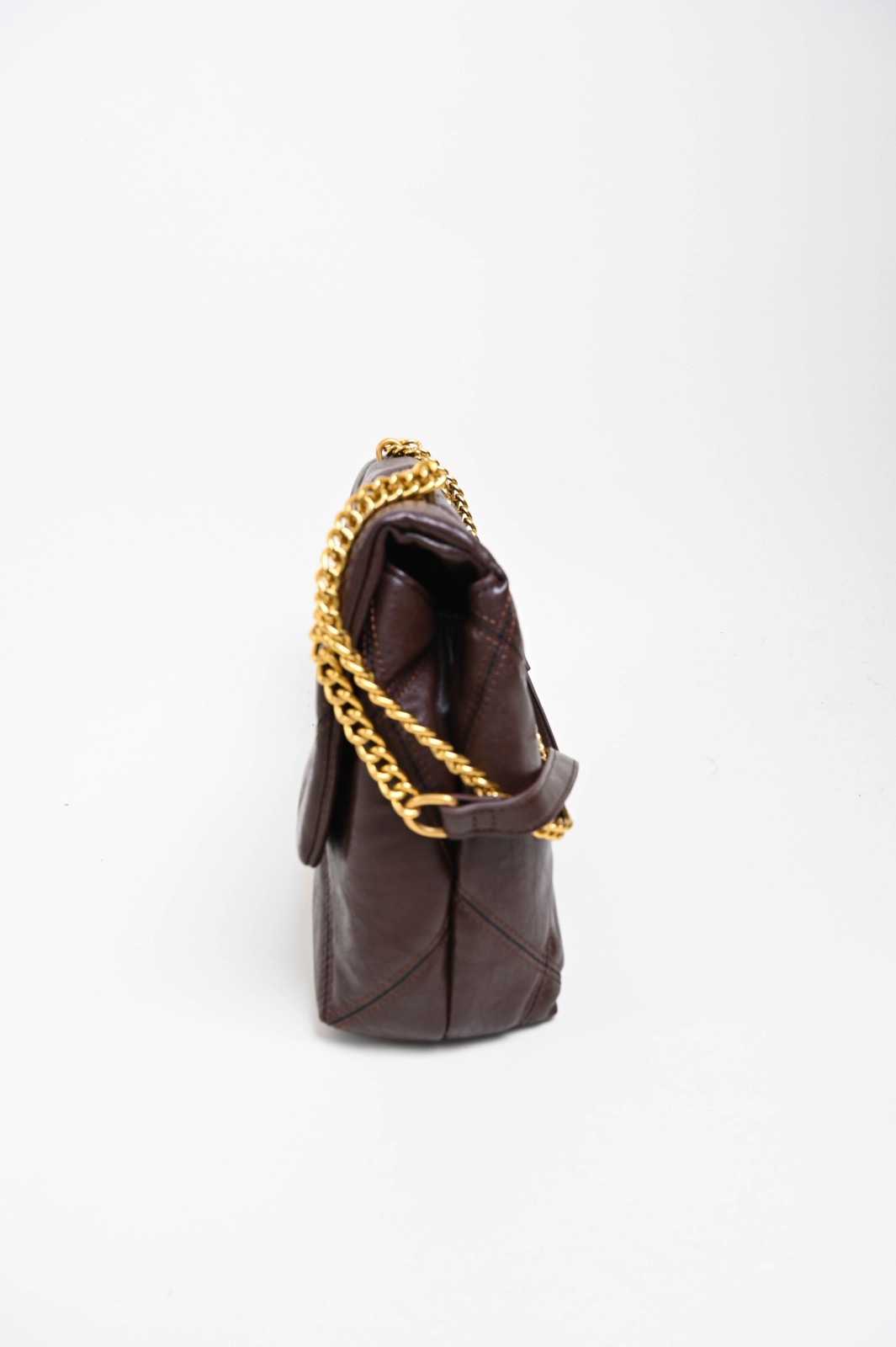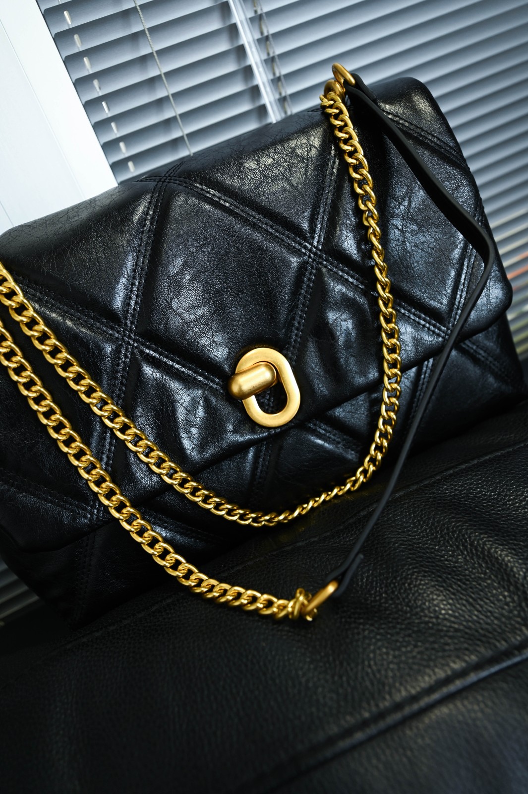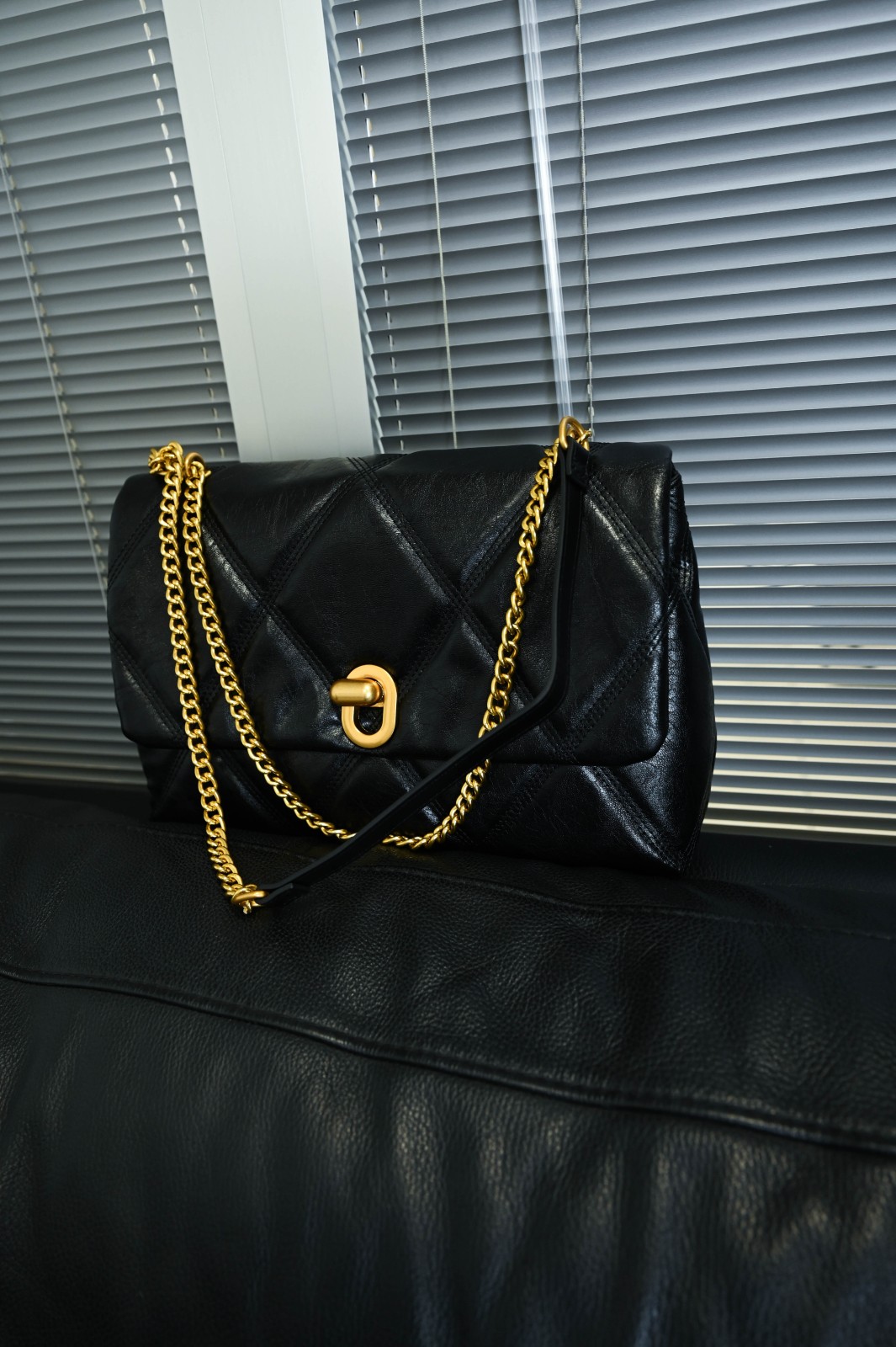 Borsa a spalla realizzata in similpelle trapuntata con cuciture a rombi e chiusura frontale con dettaglio dorato. Il manico doppio con catena e inserto in similpelle garantisce comfort e un tocco sofisticato. Morbida e strutturata al tempo stesso, è perfetta per aggiungere eleganza ai look quotidiani o per completare outfit più raffinati. Un modello iconico che unisce stile e praticità con una nota moderna.
