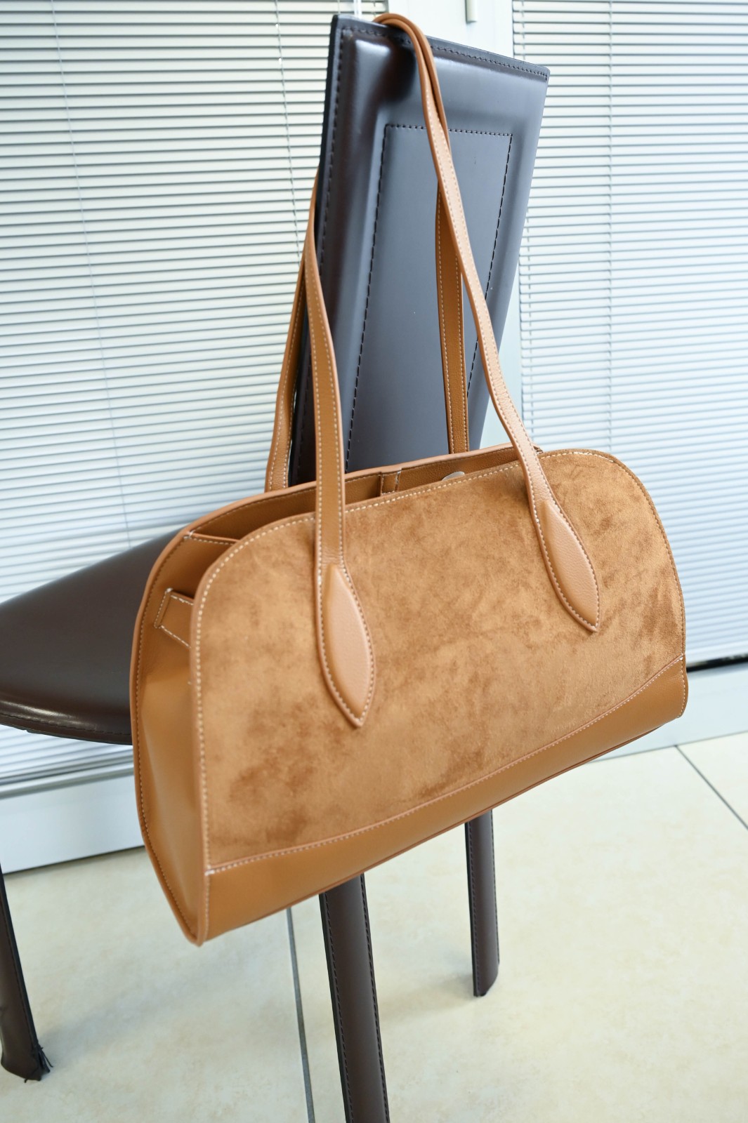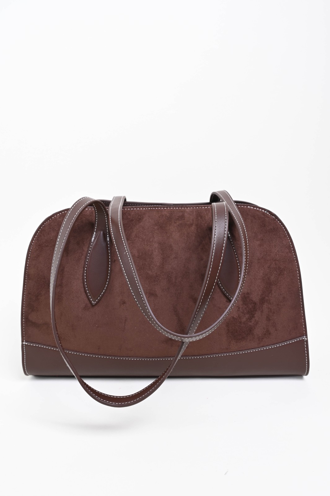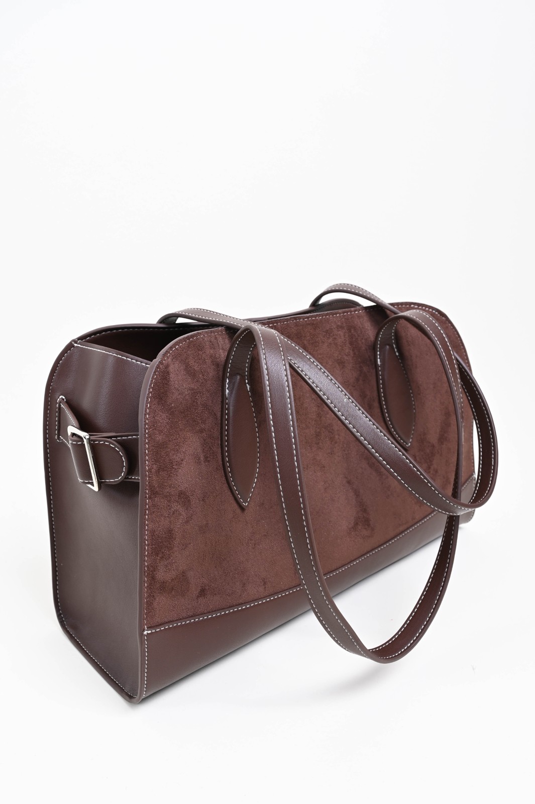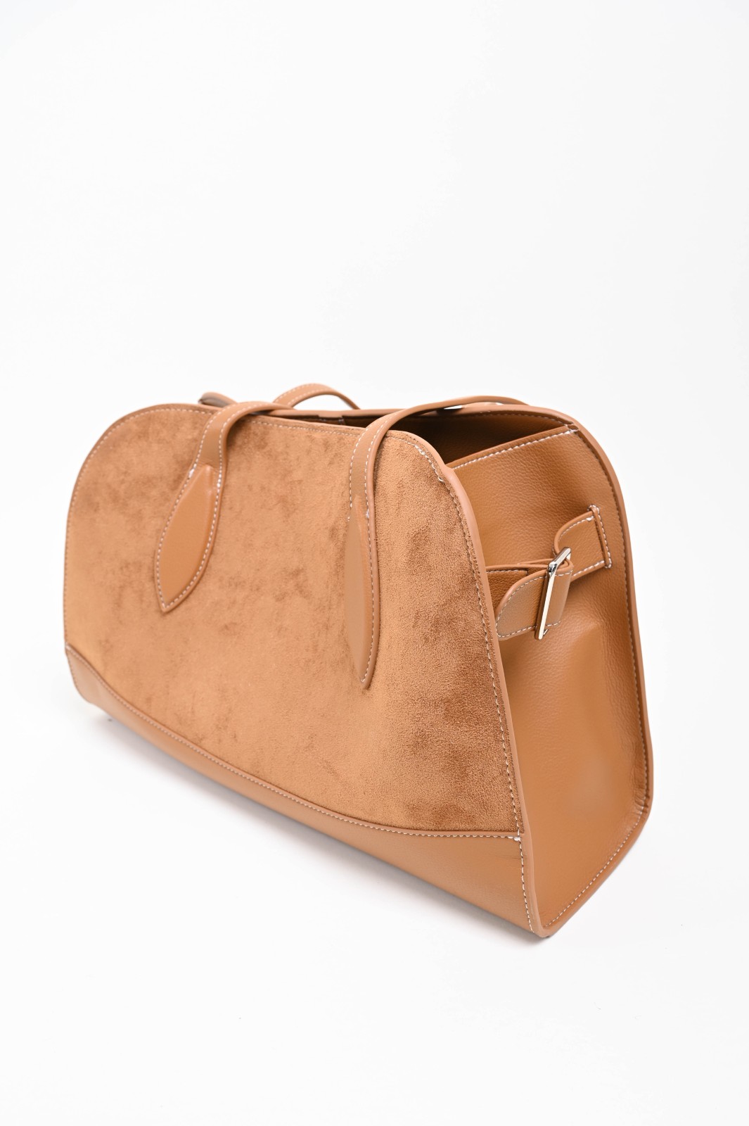 Borsa a spalla capiente e strutturata, realizzata in morbido materiale effetto suede con finiture in similpelle liscia e cuciture a contrasto. Il design presenta una silhouette arrotondata e manici lunghi che permettono di indossarla comodamente a spalla. L’ampio spazio interno la rende perfetta per l’uso quotidiano, combinando funzionalità e raffinatezza. Un accessorio versatile, ideale per completare look eleganti o casual con un tocco moderno e sofisticato.