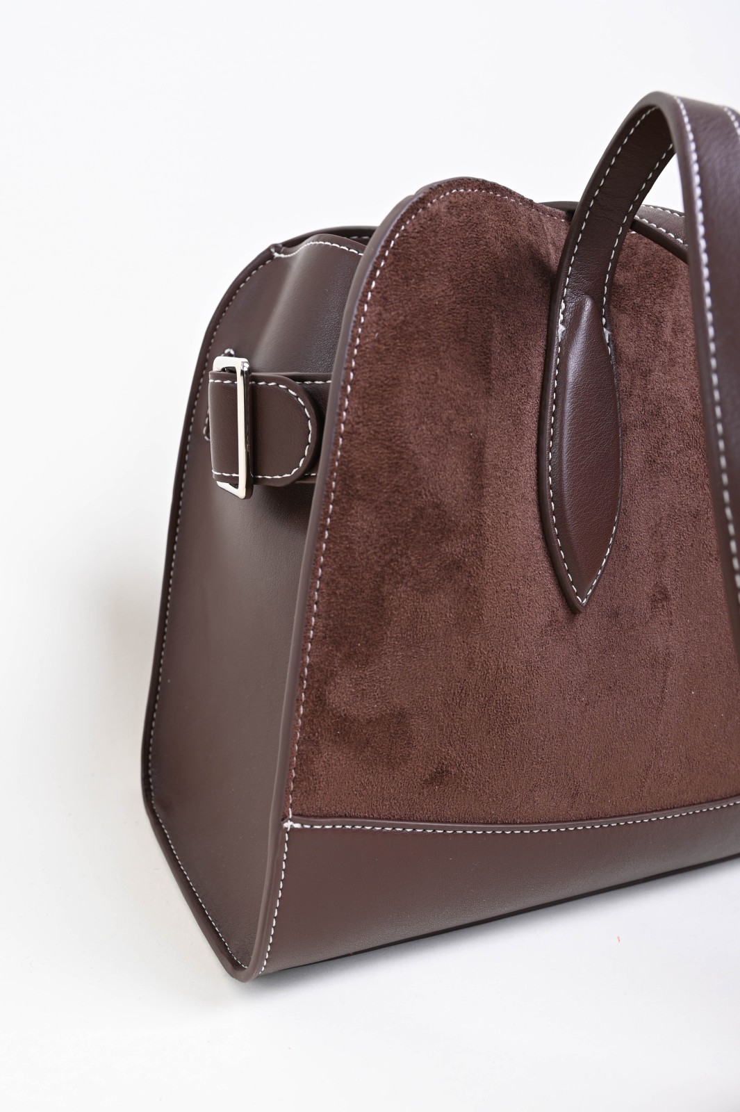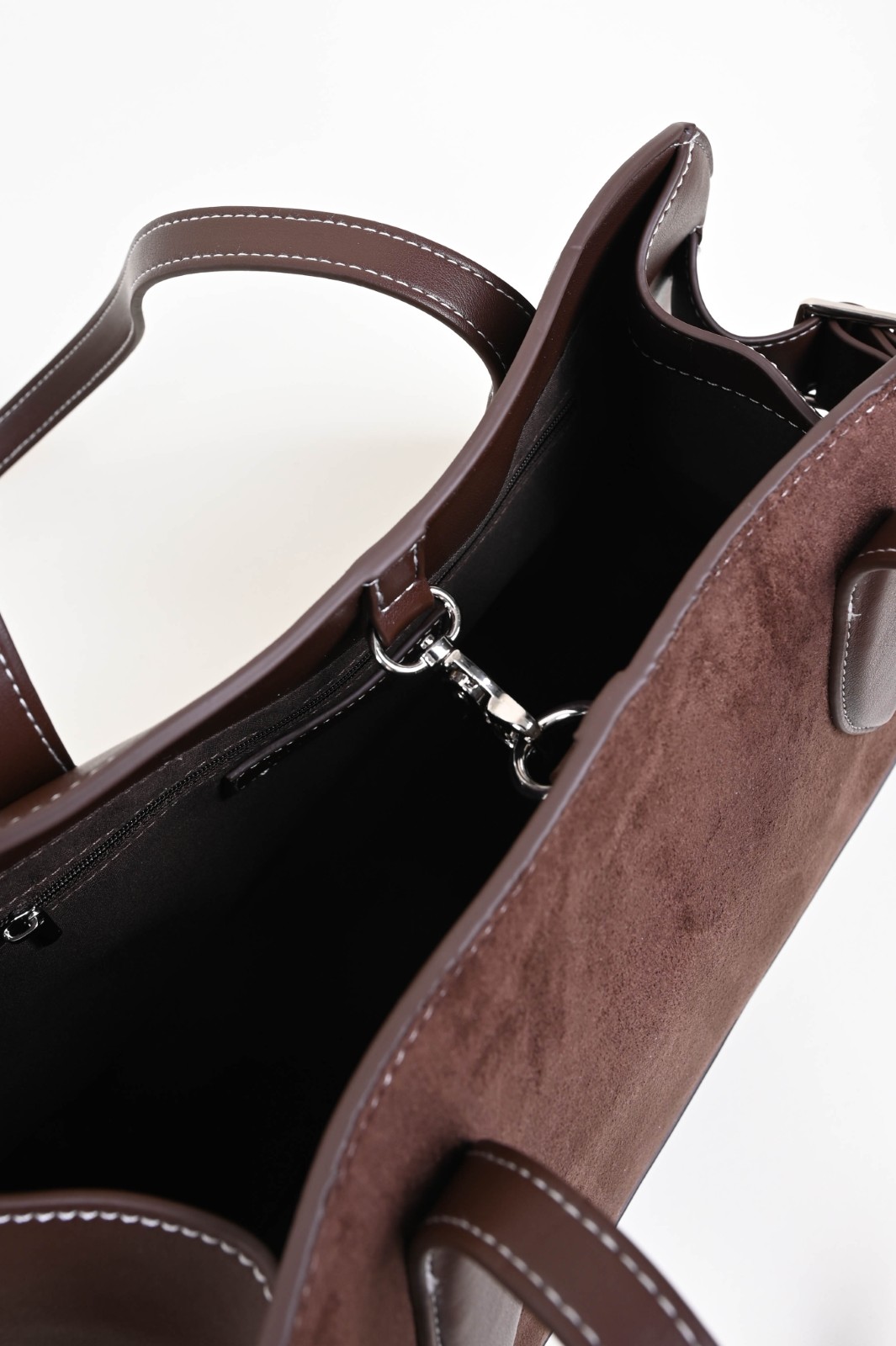 BORSA A SPALLA IN SUEDE CON DETTAGLI IN SIMILPELLE