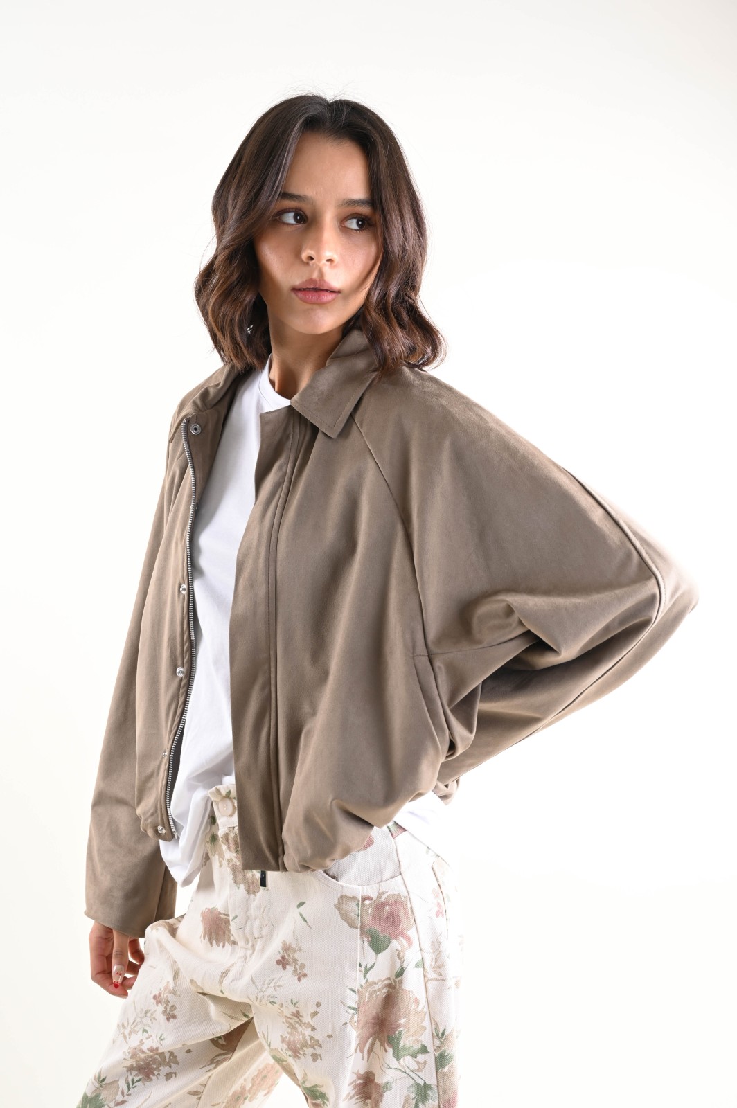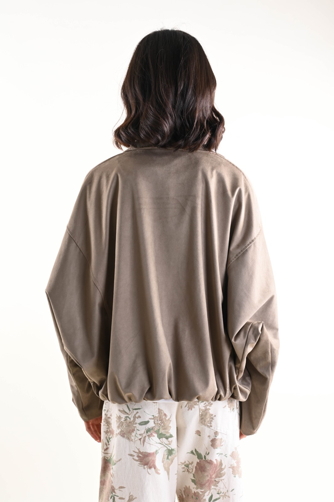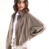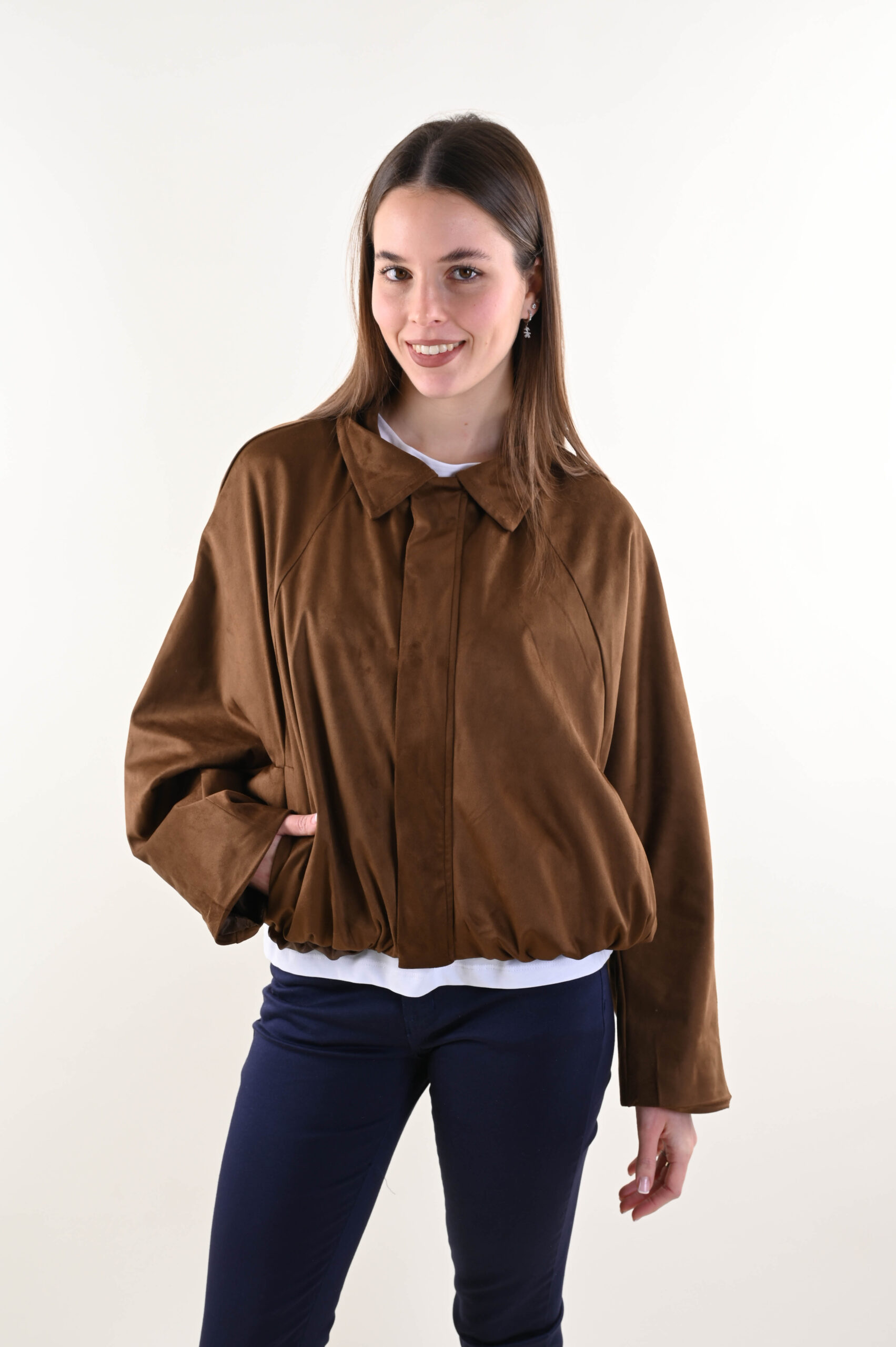 Giacca donna leggera con zip, pensata per un look contemporaneo e funzionale. Il modello presenta una linea corta con fondo elasticizzato, che valorizza la silhouette garantendo comfort e libertà di movimento. Il collo classico e la chiusura frontale con zip conferiscono un taglio pulito e moderno, mentre le maniche lunghe con arricciatura sul fondo aggiungono volume e carattere al capo.