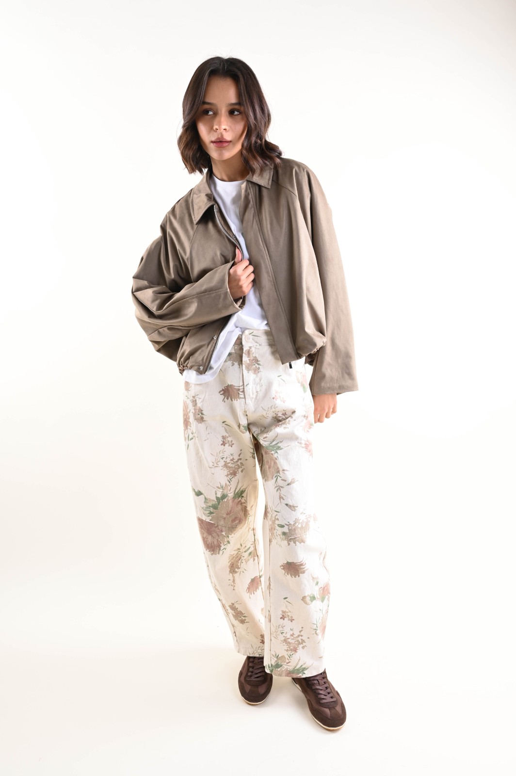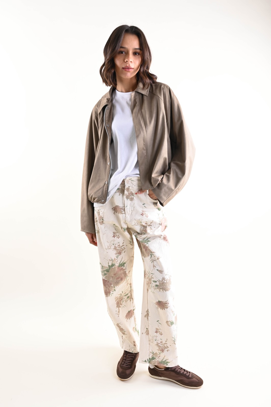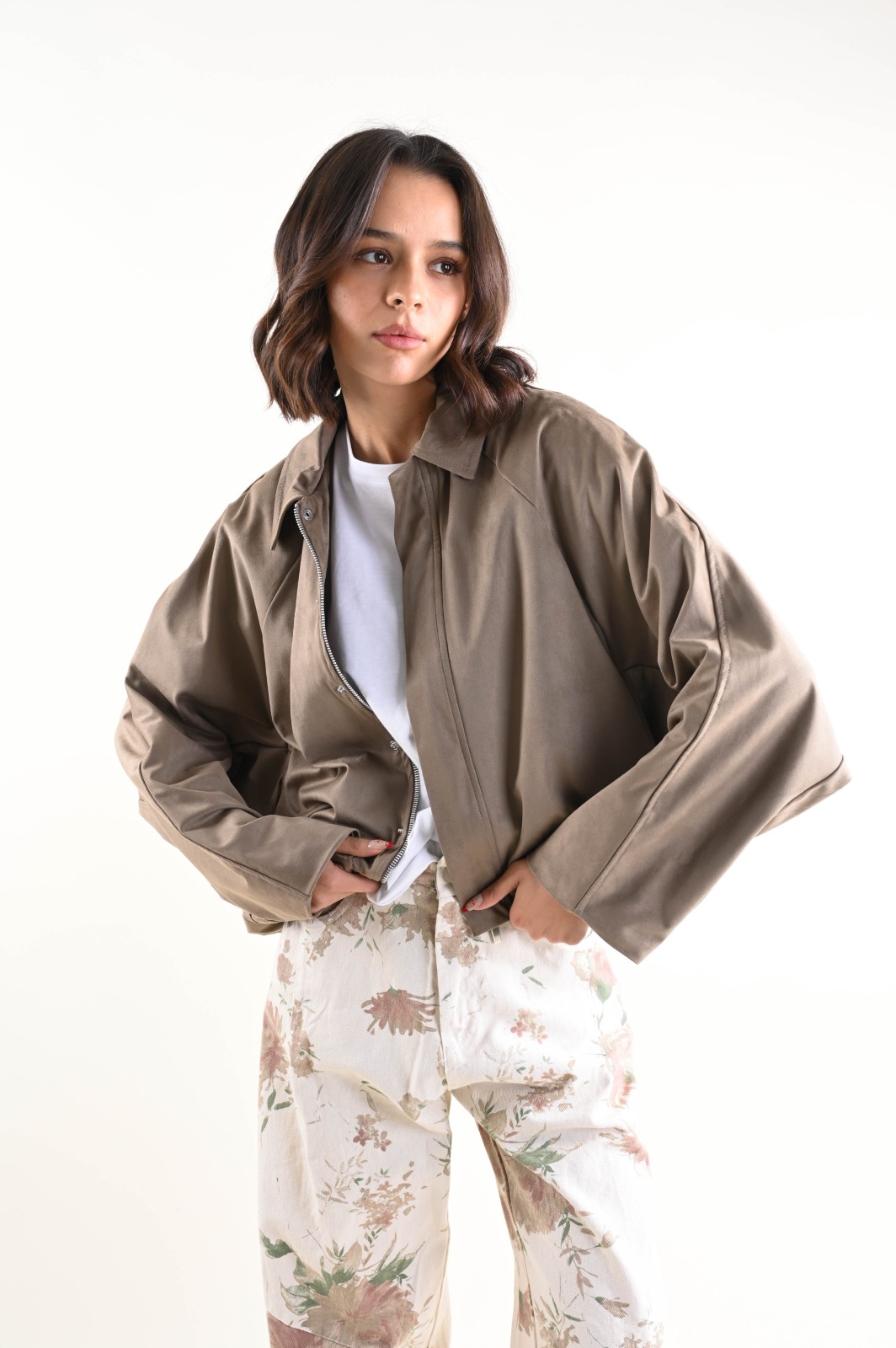 Giacca donna leggera con zip, pensata per un look contemporaneo e funzionale. Il modello presenta una linea corta con fondo elasticizzato, che valorizza la silhouette garantendo comfort e libertà di movimento. Il collo classico e la chiusura frontale con zip conferiscono un taglio pulito e moderno, mentre le maniche lunghe con arricciatura sul fondo aggiungono volume e carattere al capo.