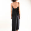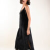 Abito lungo in velluto con spalline sottili e dettagli in pizzo sullo scollo e lungo lo spacco laterale. La linea scivolata e la morbidezza del tessuto esaltano la femminilità con eleganza e sensualità. Un capo raffinato e contemporaneo, ideale per le occasioni serali.