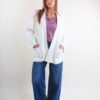 Cardigan aperto in filato morbido, dalla linea fluida e minimal, con collo a scialle lavorato a costine e comode tasche frontali. Un capo versatile e senza tempo, perfetto per completare con eleganza outfit quotidiani e look da ufficio. La vestibilità relaxed e il design essenziale lo rendono ideale da sovrapporre a camicie o dolcevita nei mesi più freddi.