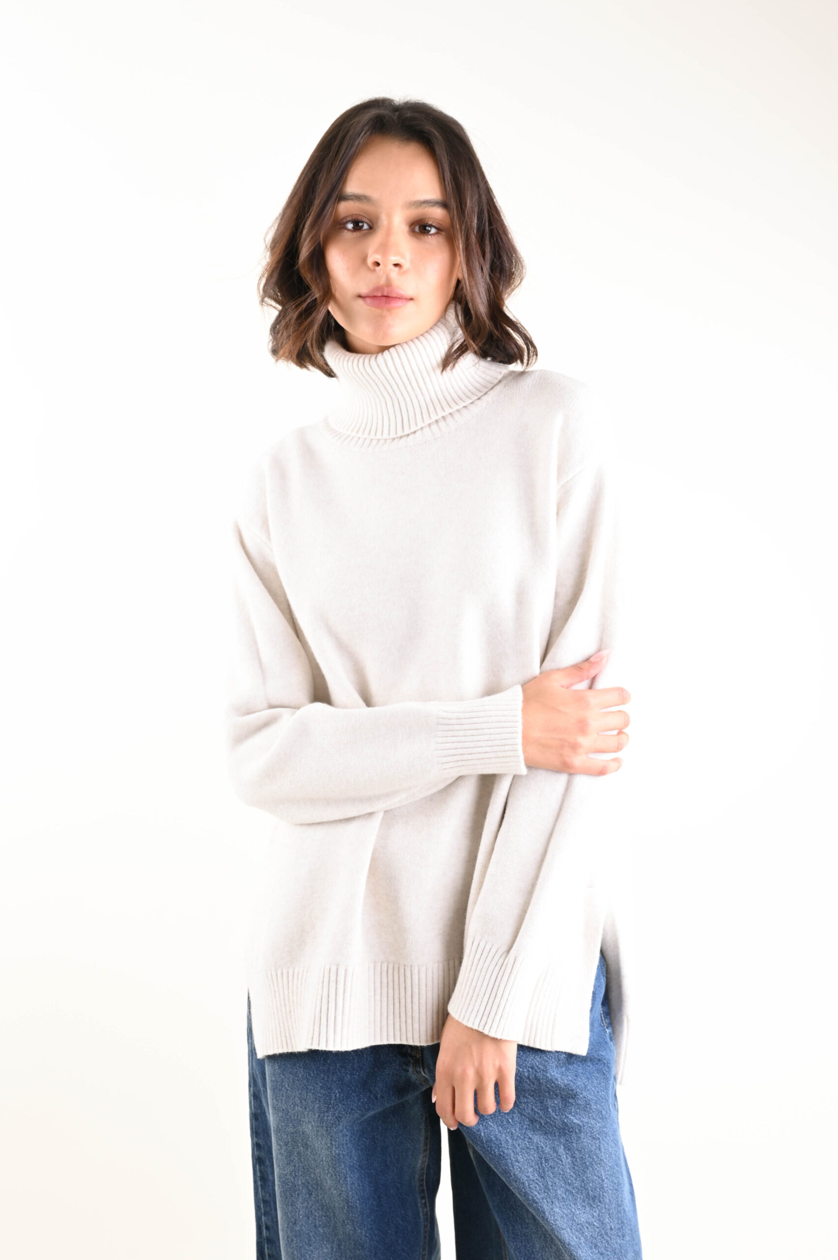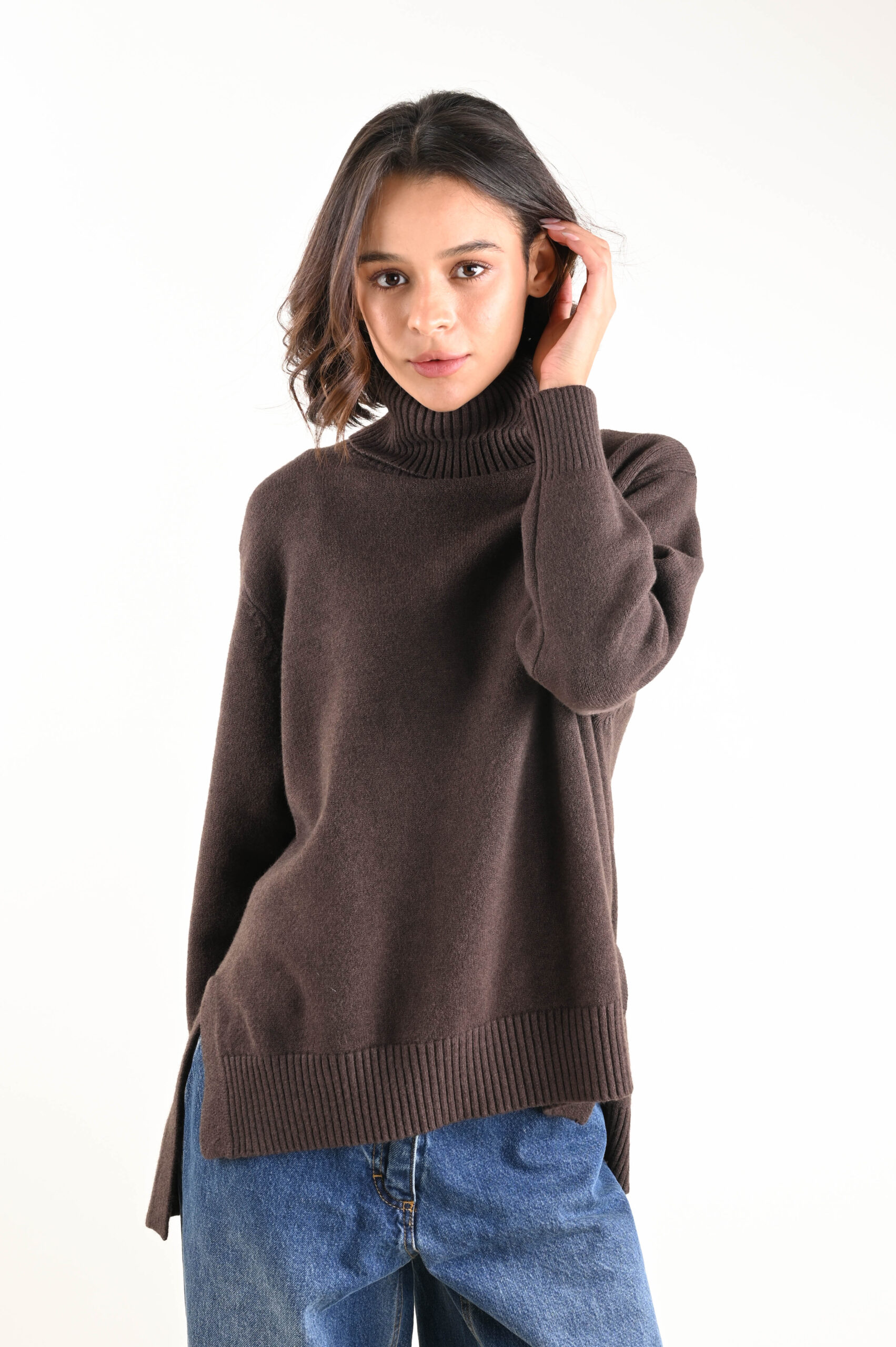 Realizzata in un filato caldo e soffice, unisce comfort e stile in perfetto equilibrio. Una proposta Myastreet che interpreta la maglieria in chiave moderna, pensata per una donna sofisticata e dinamica.