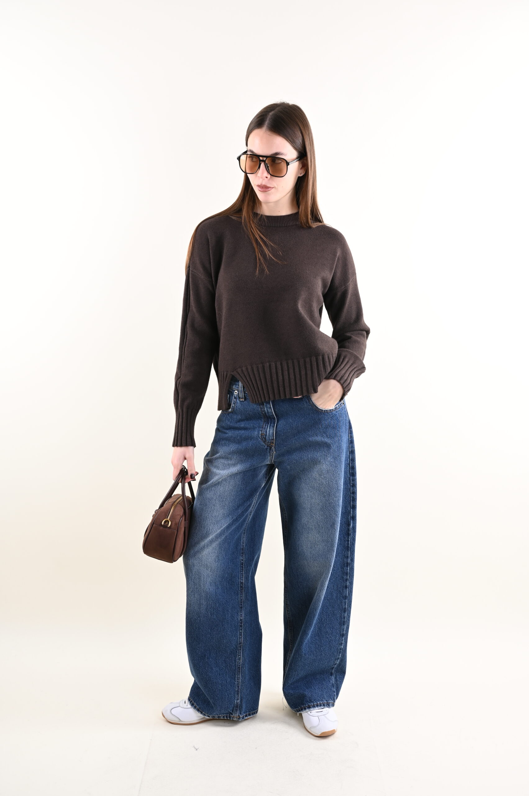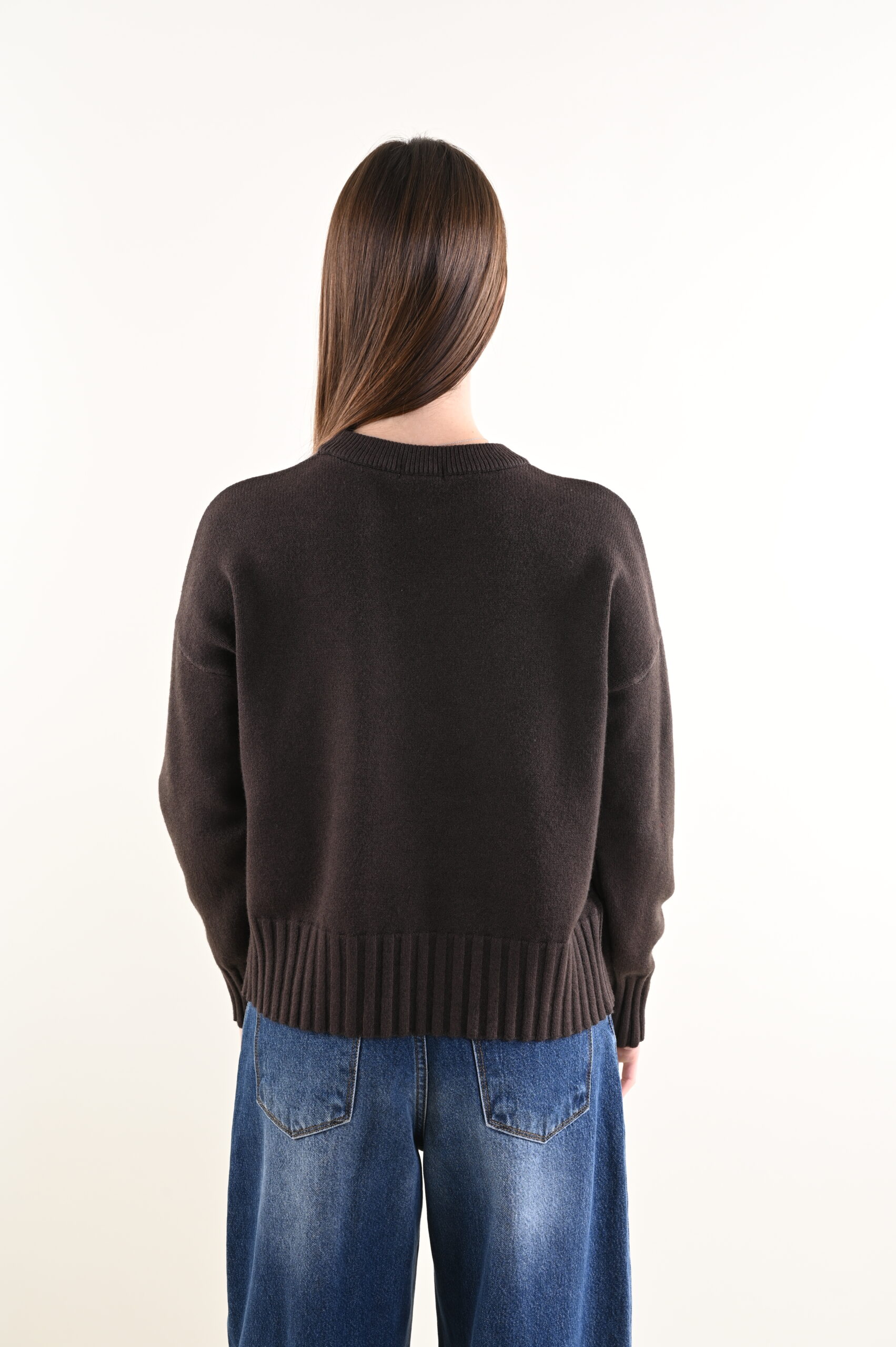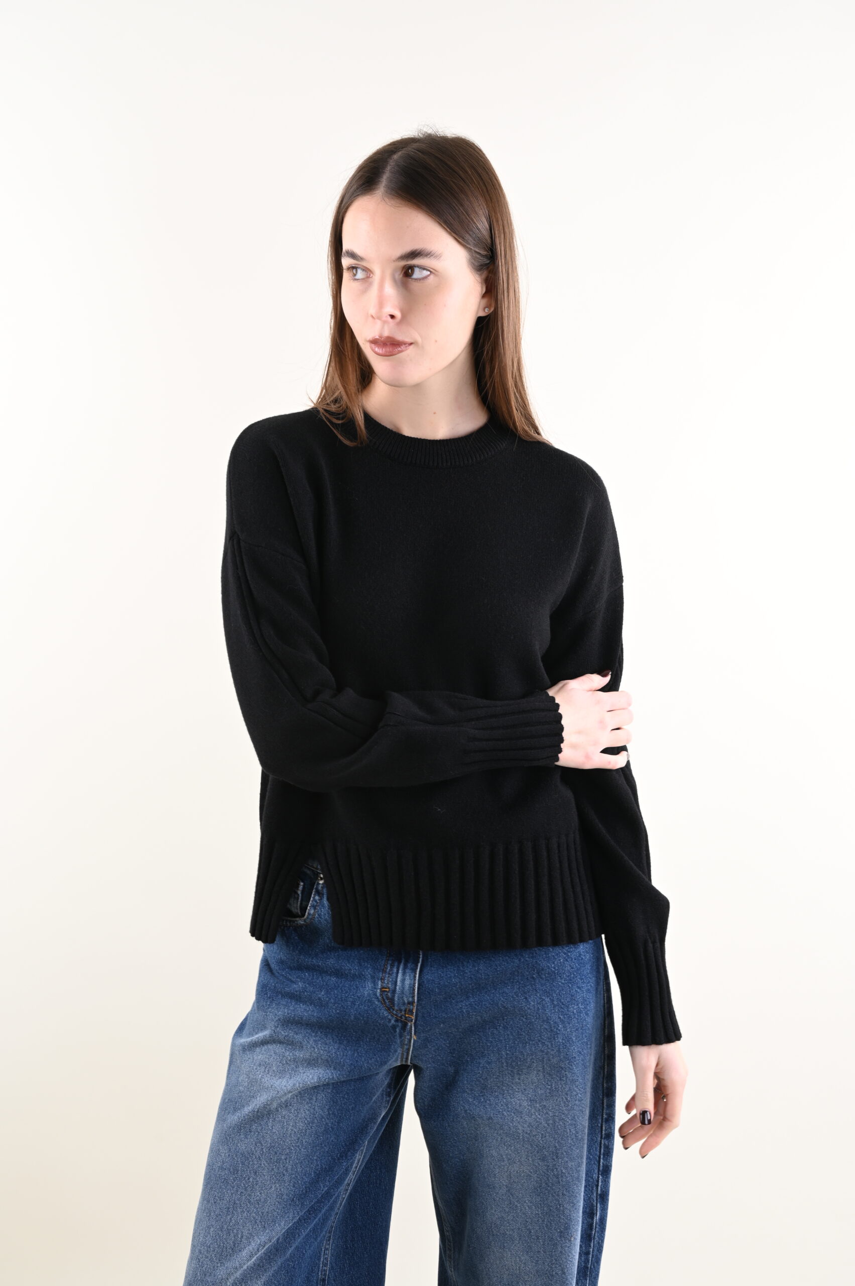 Maglia girocollo dalla linea essenziale, impreziosita da orli a coste che donano struttura al design. Il modello presenta una mano morbida e una vestibilità confortevole, con maniche leggermente lavorate e fondo elasticizzato per un fit definito ma naturale. Un capo versatile e senza tempo, perfetto per completare look casual o più ricercati.