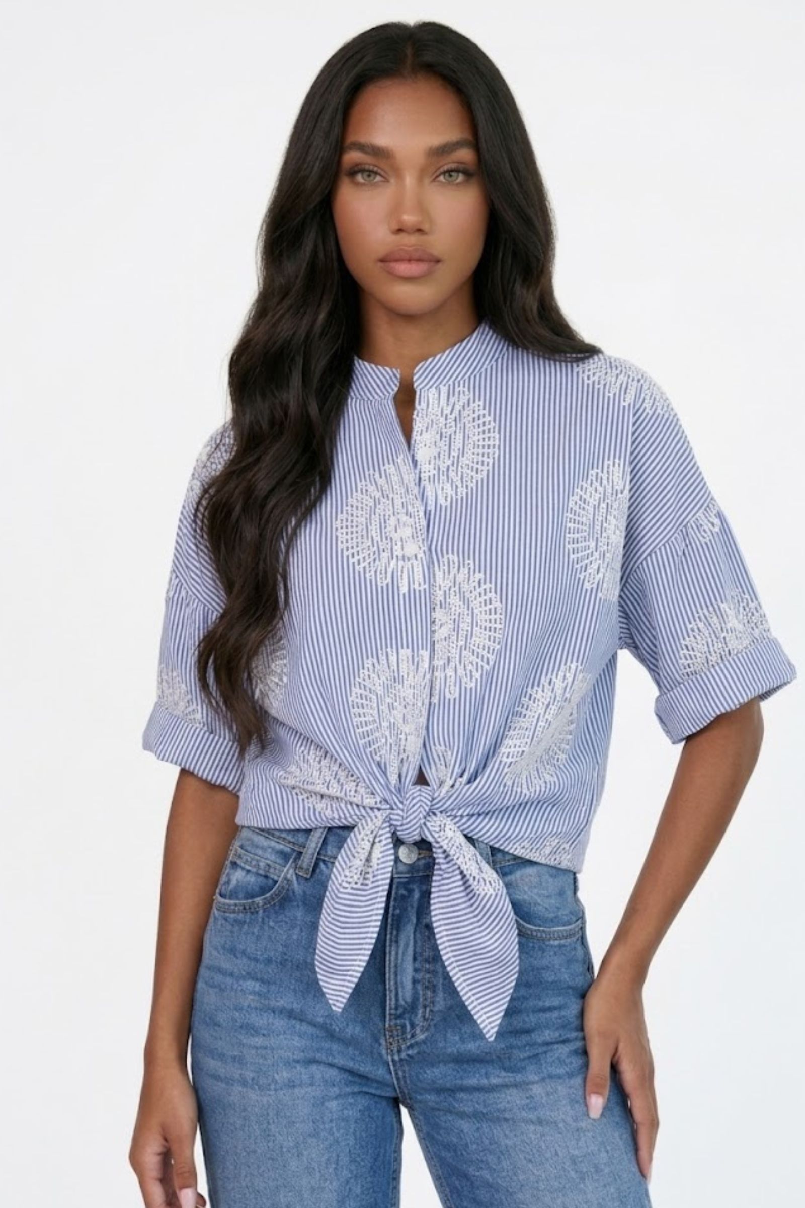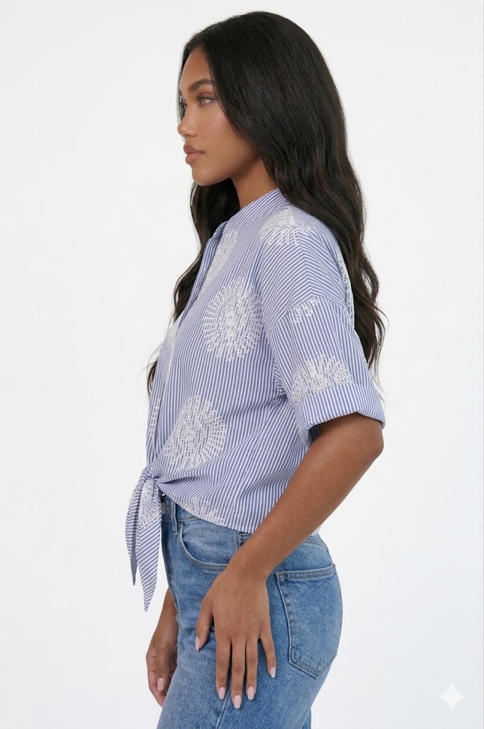 CAMICIA RICAMATA CON NODO FRONTALE