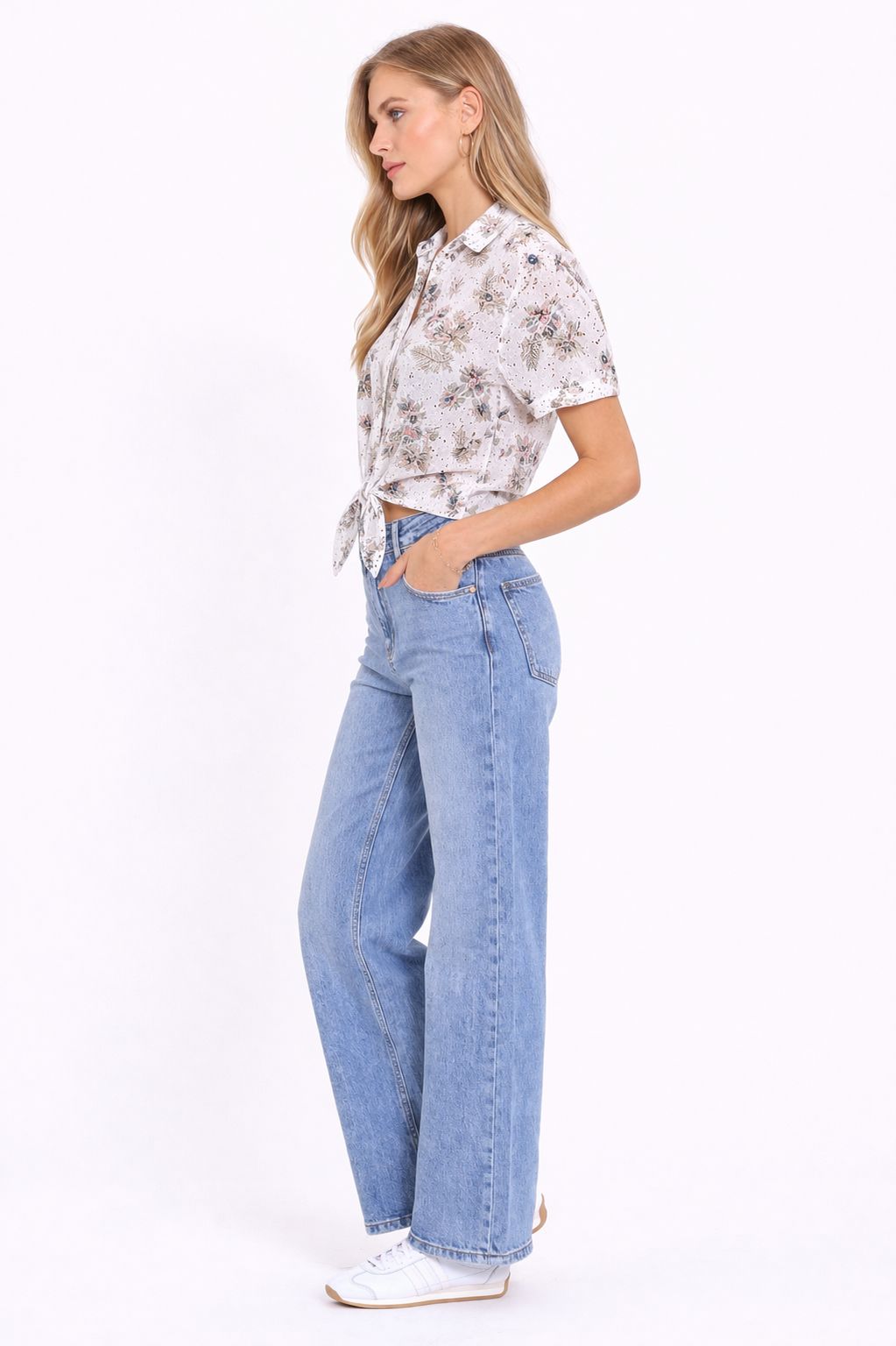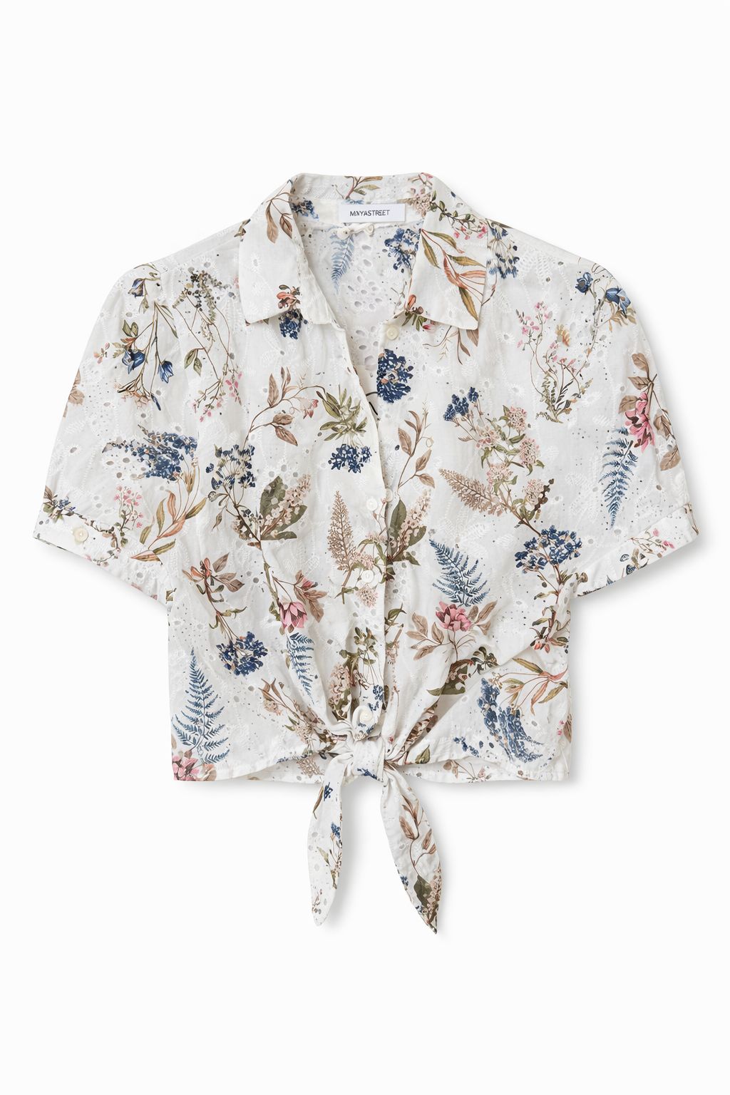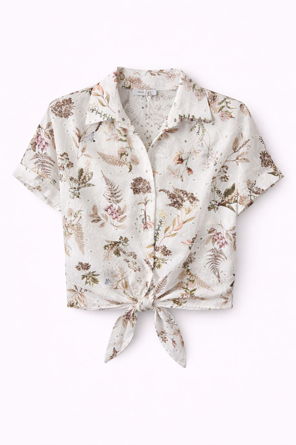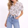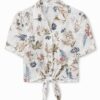 CAMICIA IN SANGALLO STAMPA FLOREALE CON NODO FRONTALE