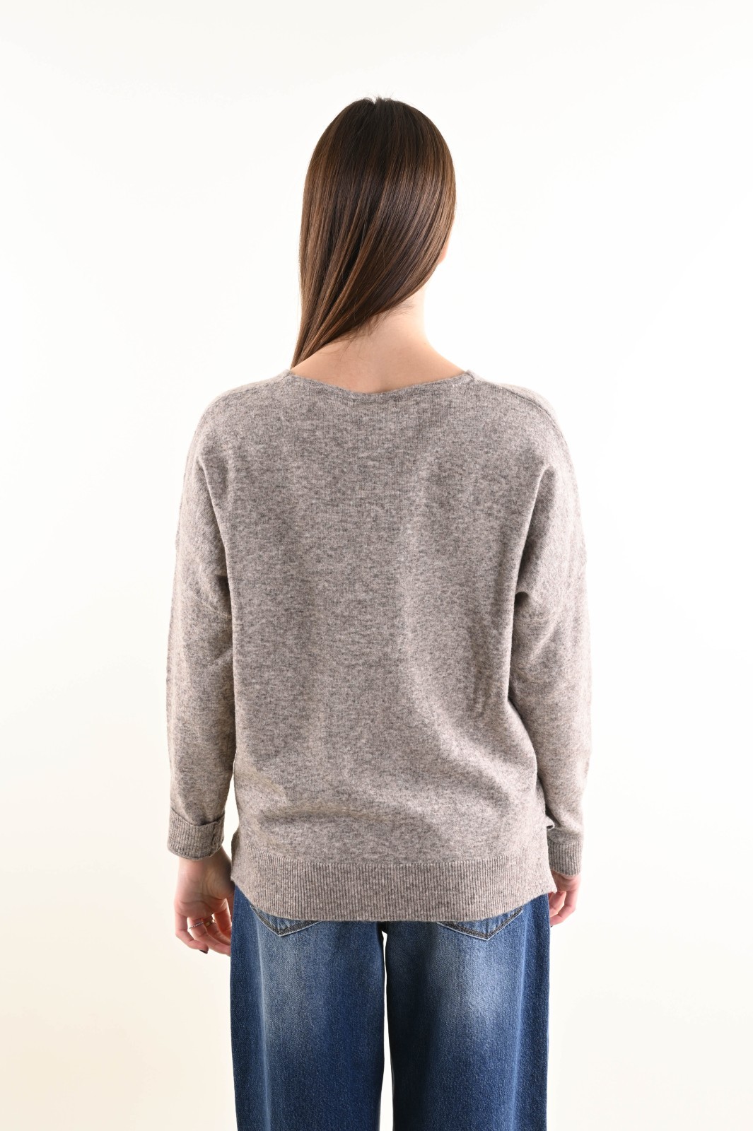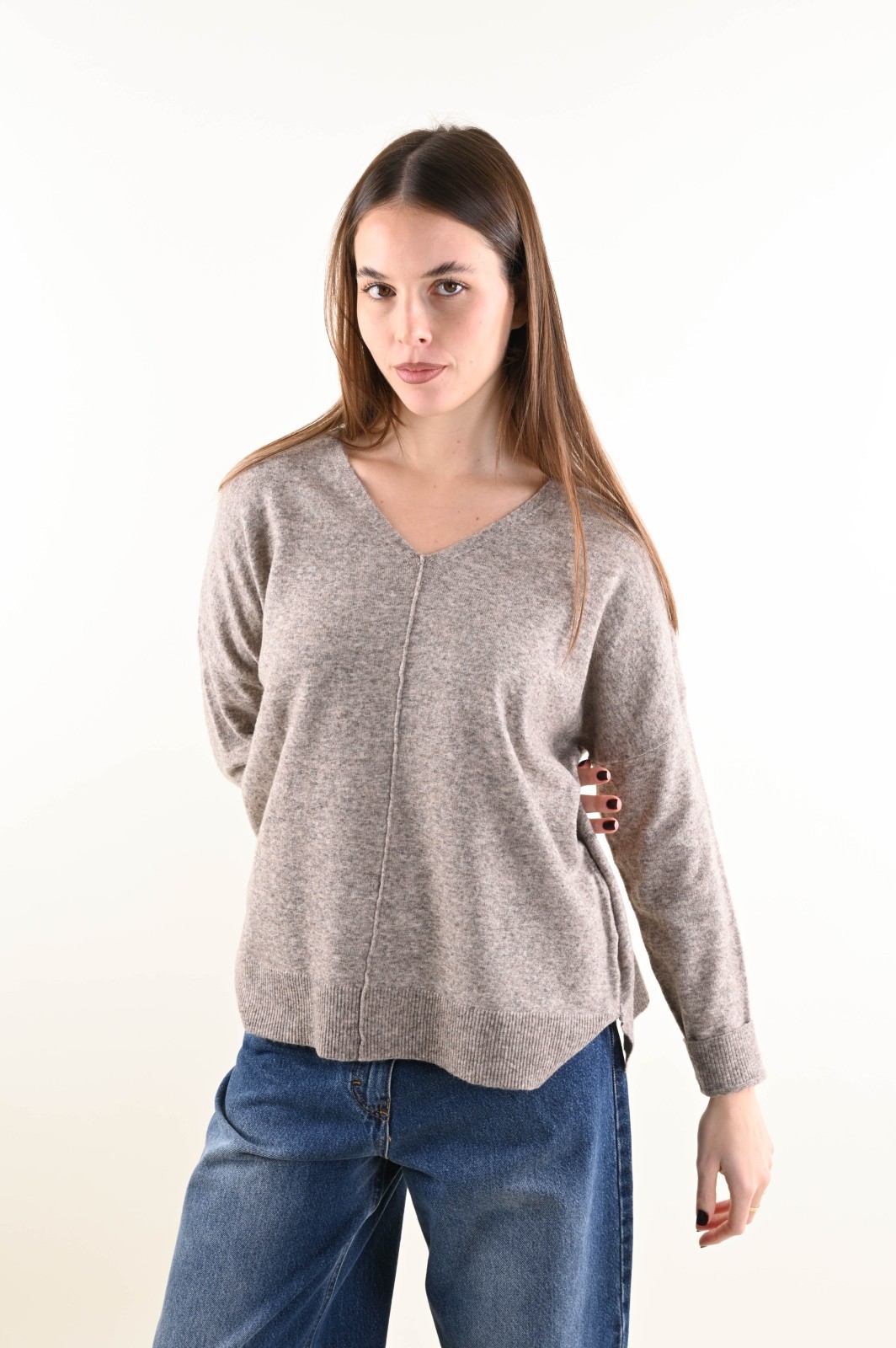 Maglia donna morbida con scollo a V e vestibilità over, ideale per boutique che cercano capi versatili, confortevoli e perfetti per ogni stagione.