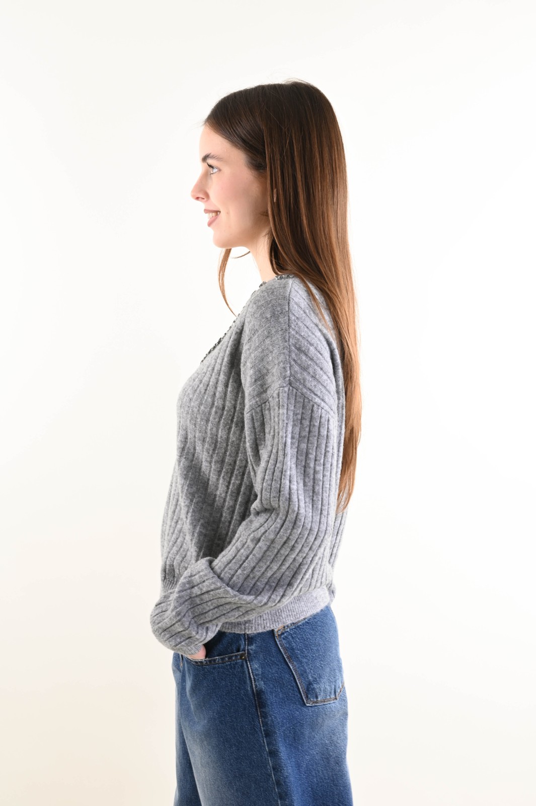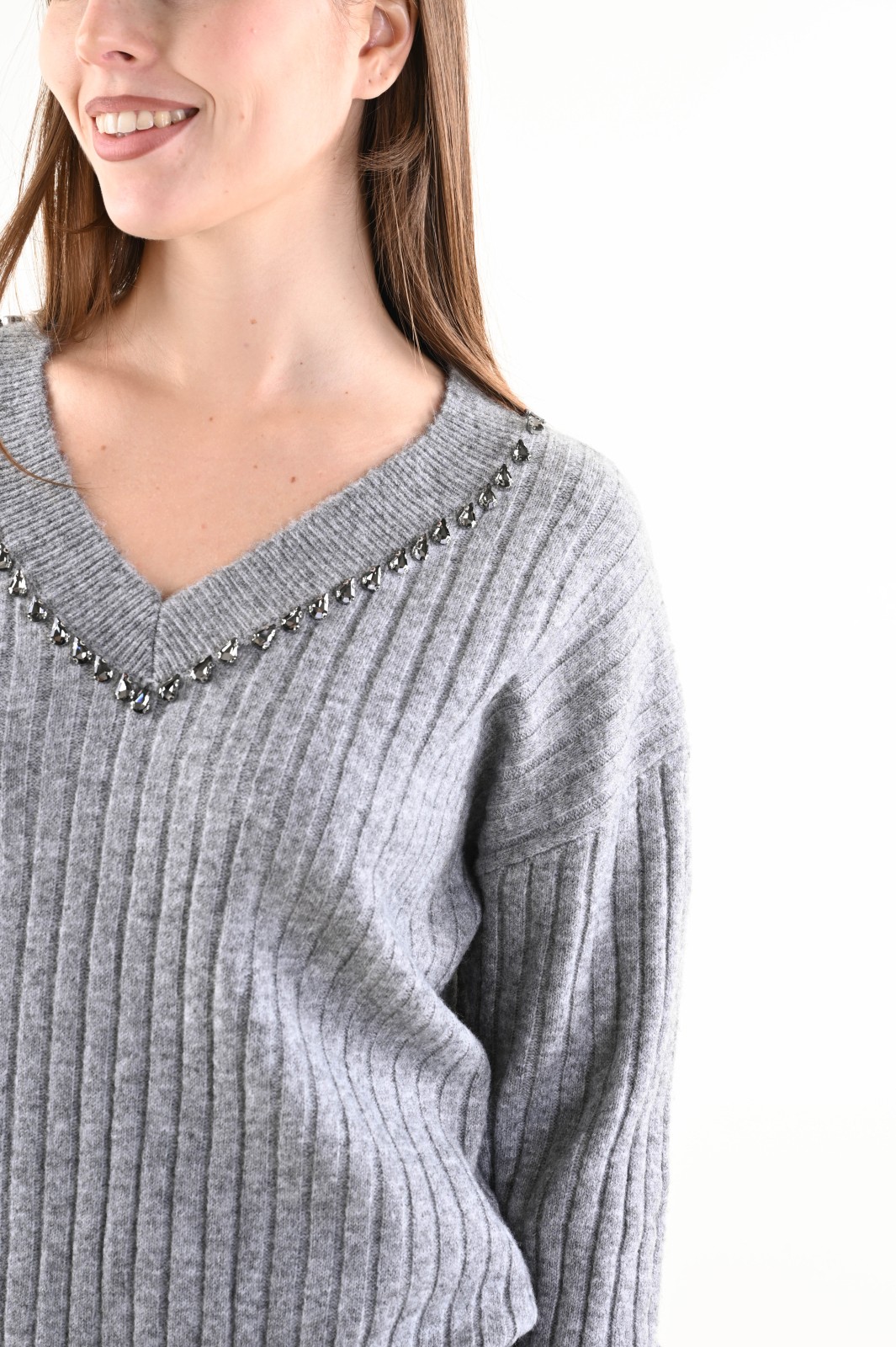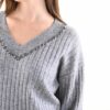 MAGLIA A COSTE SCOLLO A V CON DETTAGLIO GIOIELLO