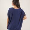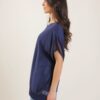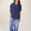 Maglia oversize con trasparenze laterali, scollo rotondo con orlo a taglio vivo, fondo a costine.