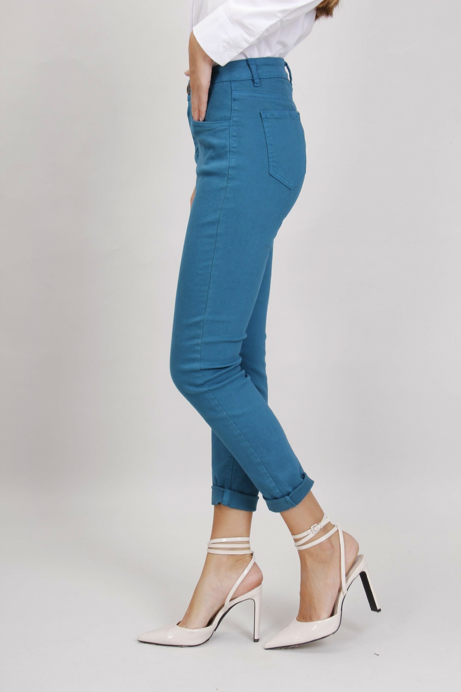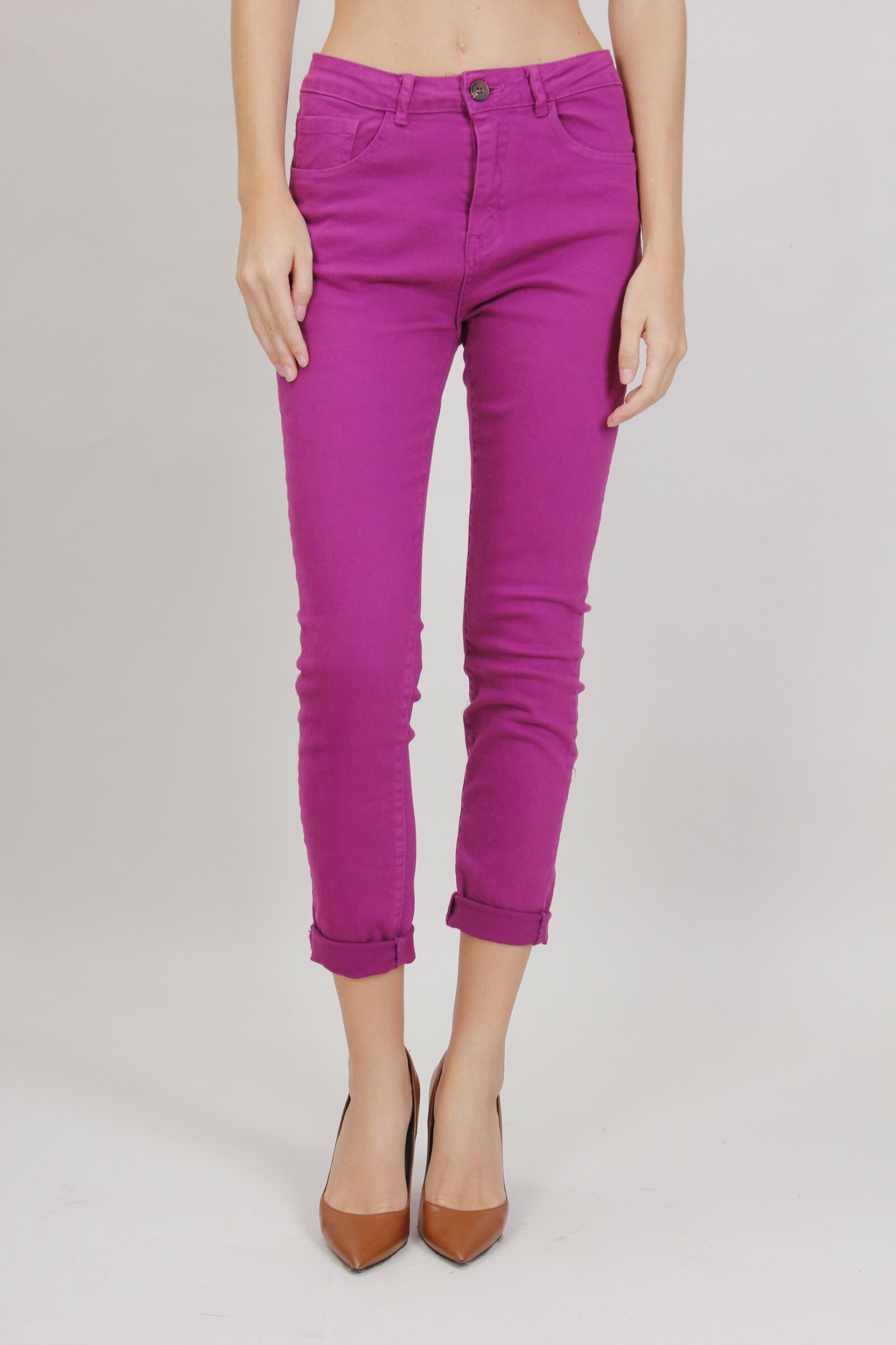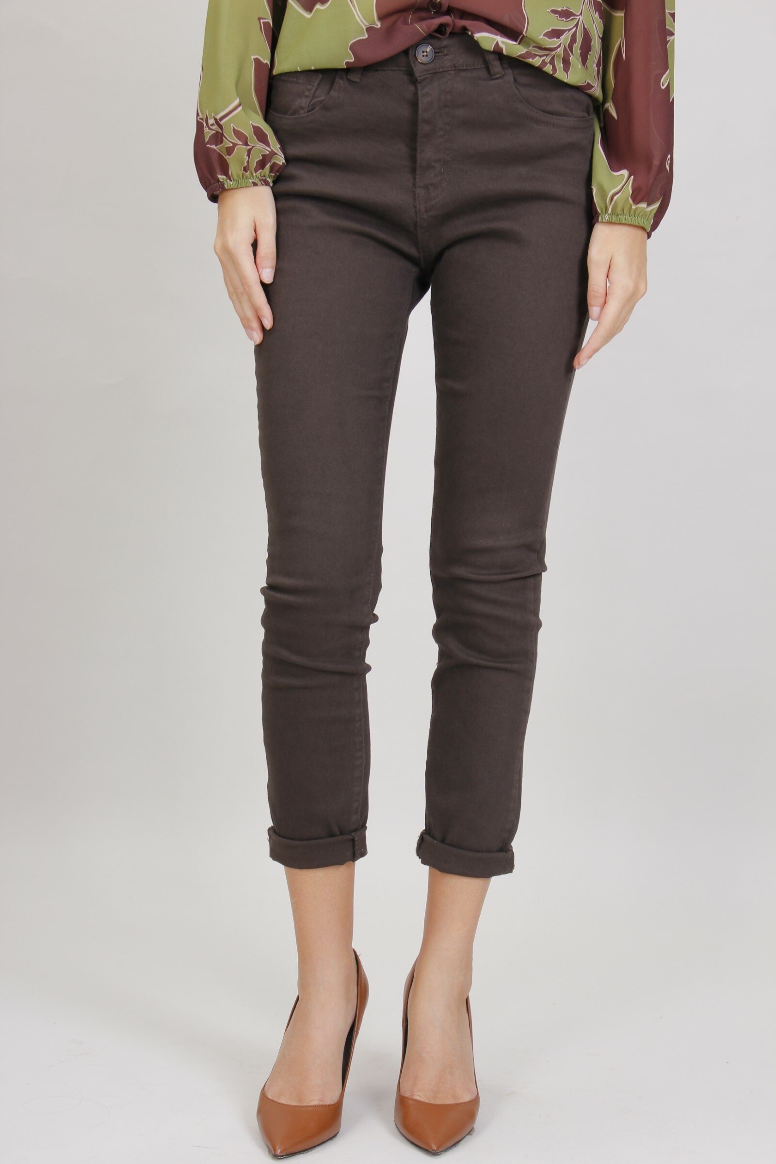 Pantaloni 5 tasche aderenti, vita media. Vestibilità regolare.