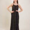 Abito lungo dallo stile boho realizzato in morbido cotone stropicciato, arricchito da balze orizzontali con bordo sfrangiato che conferiscono un effetto dinamico e artigianale. Il design ampio e la scollatura all’americana lo rendono perfetto per la stagione estiva, assicurando comfort e freschezza. Un capo ideale per boutique che vogliono proporre uno stile naturale, rilassato ma di tendenza, perfetto per vacanze, tempo libero o collezioni resort.