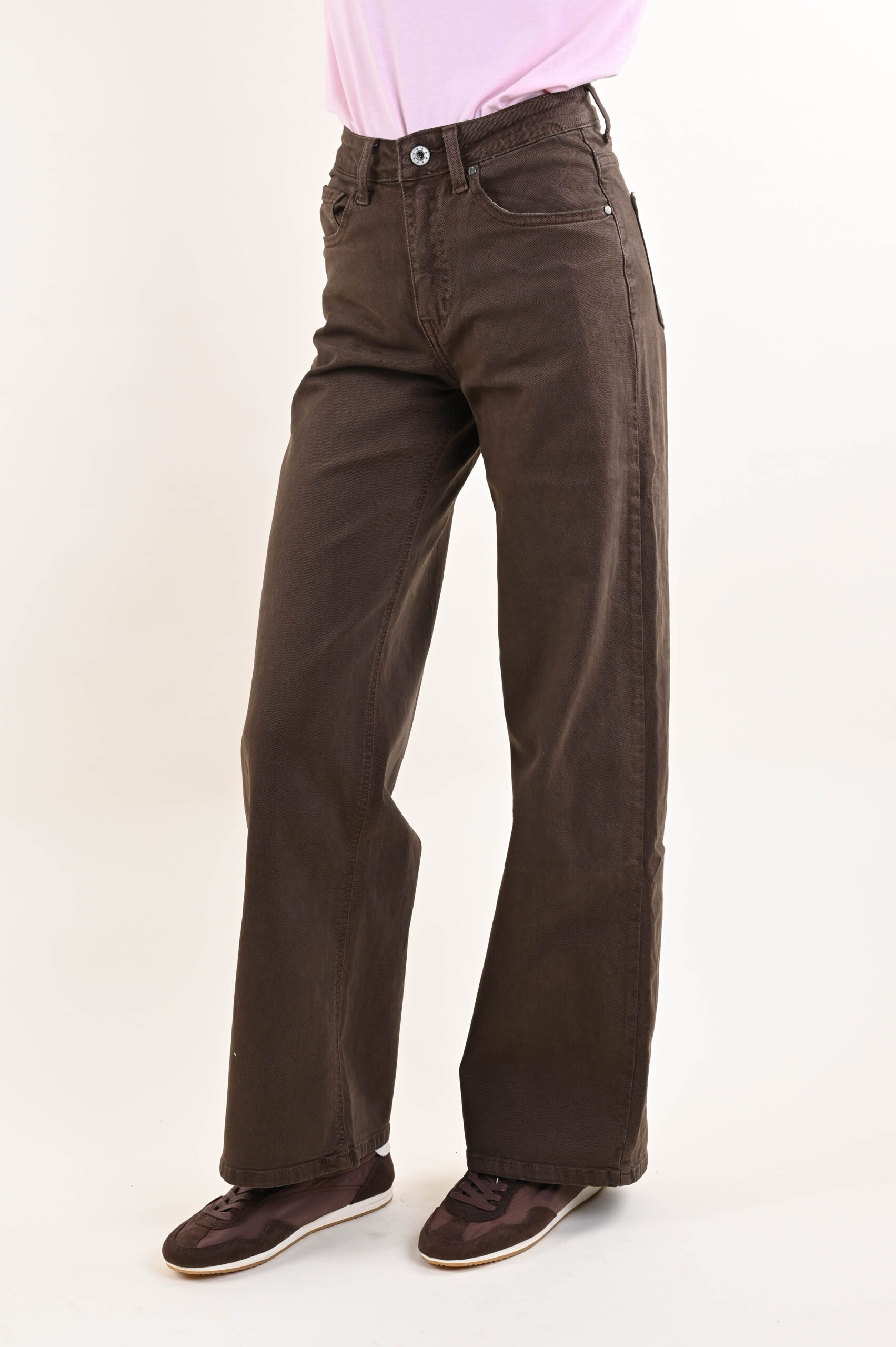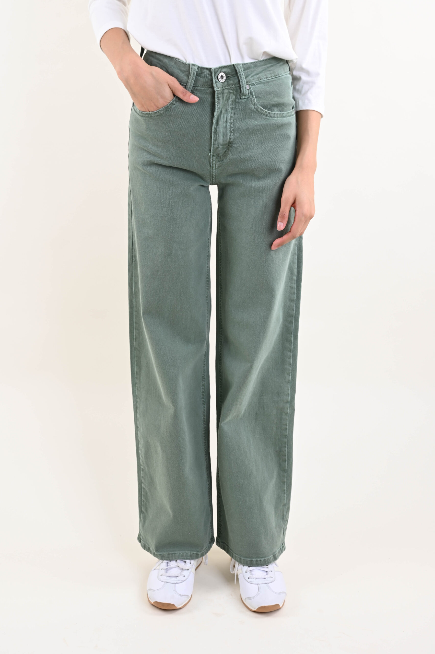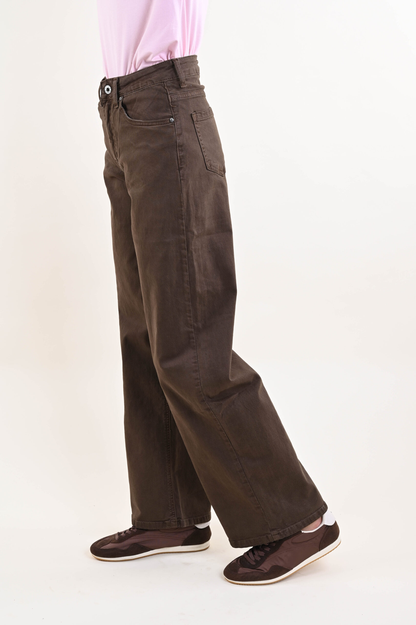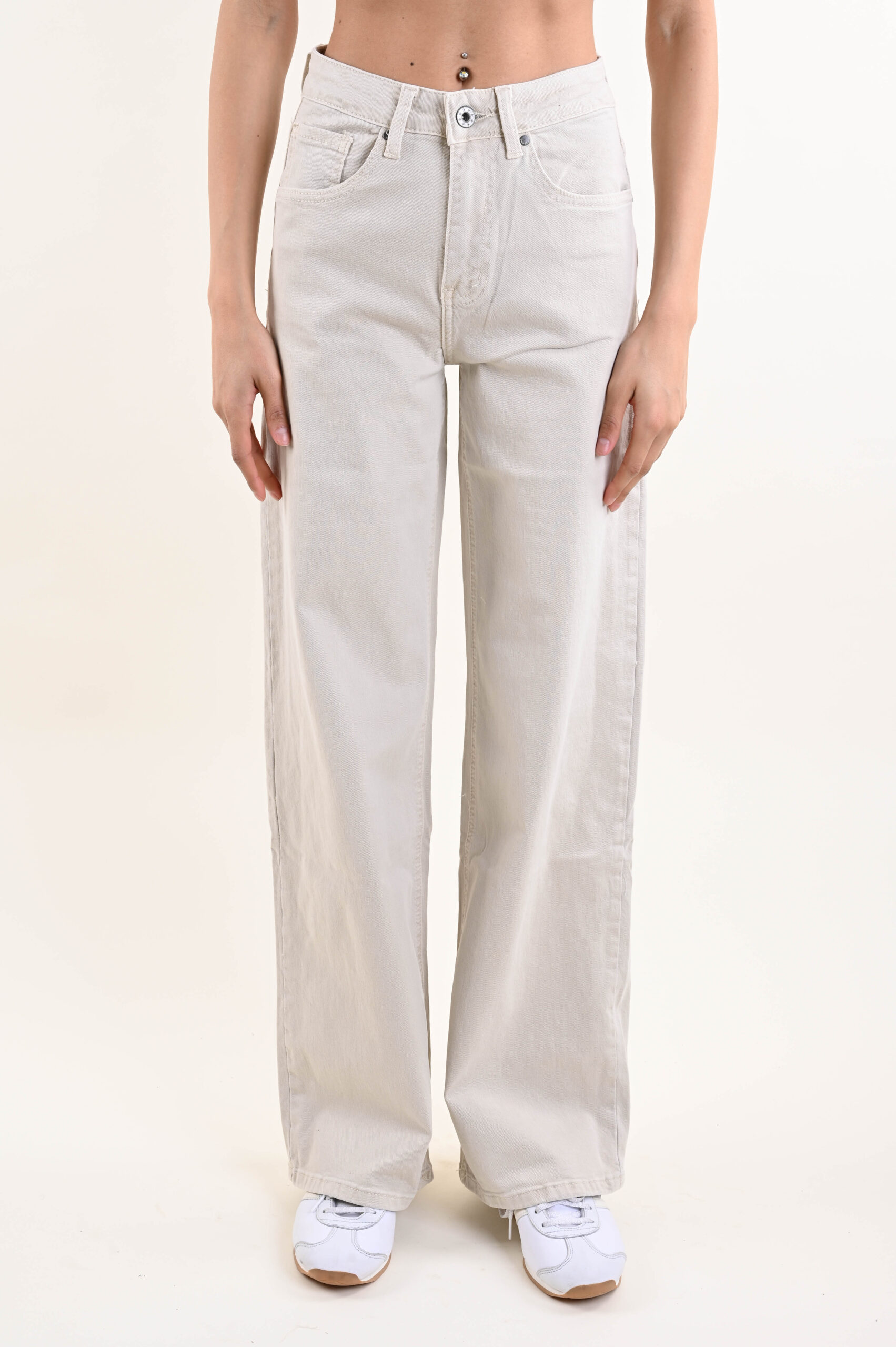 Pantalone donna in denim dal design essenziale e contemporaneo, caratterizzato da una gamba dritta e una linea pulita che valorizza la silhouette. Il modello presenta vita regolare, chiusura frontale con bottone e zip e tasche funzionali.