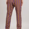 Pantalone taglio classico a righe, elastico in vita e finta tasca posteriore.