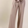 Pantalone ampio in tessuto leggero con vita alta arricchita da un maxi fiocco frontale. La linea morbida e la gamba dritta garantiscono comfort e stile mentre l’elastico in vita assicura una perfetta vestibilità.