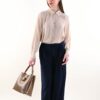 Camicia donna in tessuto fluido, pensata per un look elegante e versatile. Il modello presenta una linea morbida e scivolata che accompagna la silhouette senza costringerla. Il collo classico e la chiusura frontale con bottoni definiscono uno stile pulito e senza tempo, mentre le maniche lunghe completano il design con equilibrio e praticità. Il tessuto leggero garantisce comfort durante tutta la giornata, rendendo la camicia ideale sia per l’uso quotidiano che per contesti più curati.