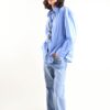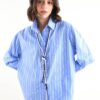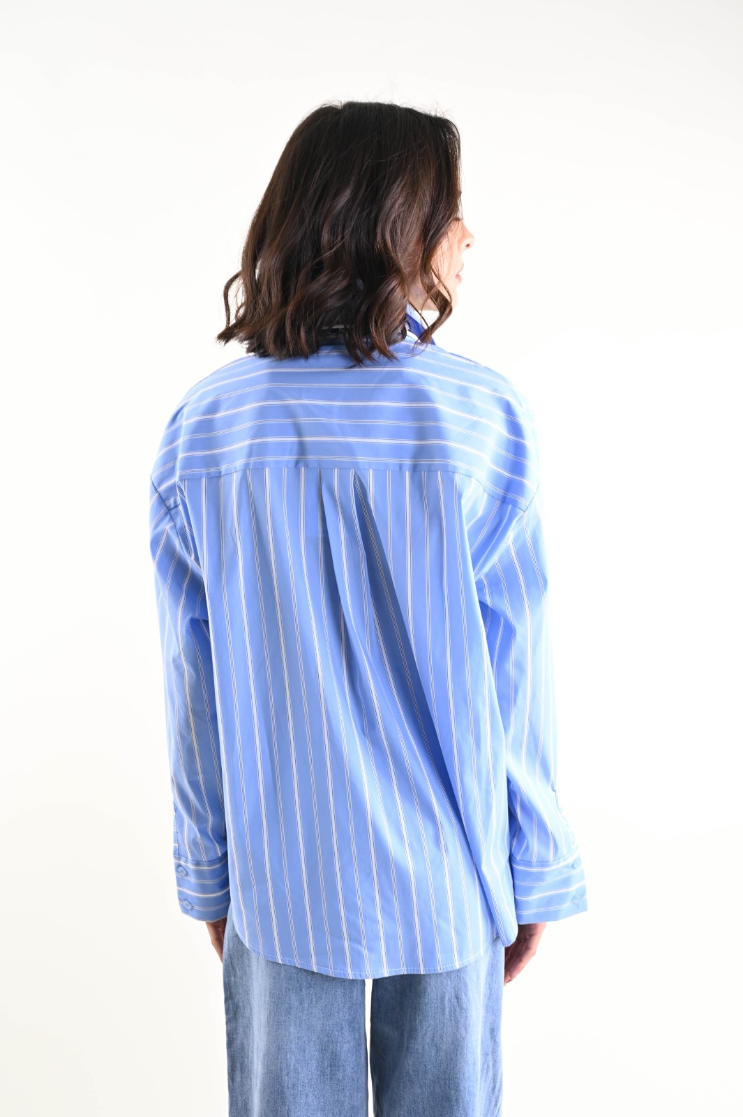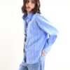Camicia donna a righe, pensata per un look moderno e disinvolto. Il modello presenta una linea morbida e fluida, con collo classico e chiusura frontale con bottoni, ideale anche per un utilizzo quotidiano. Le maniche lunghe con polsino completano il design, garantendo comfort e versatilità. Perfetta da indossare sia da sola che come overshirt leggera, questa camicia è una proposta attuale e facilmente abbinabile per il negozio.