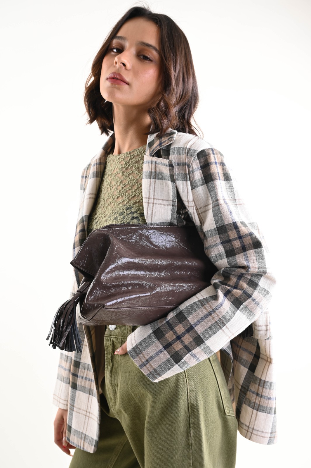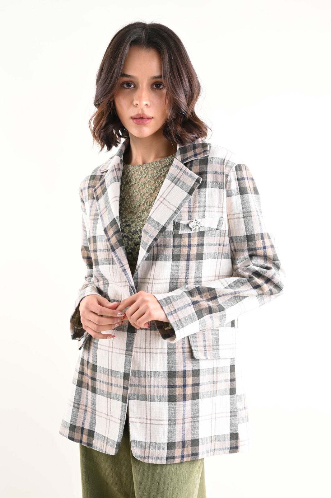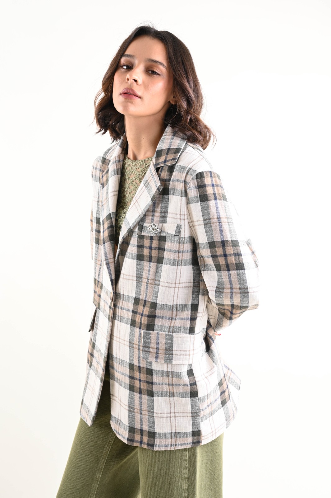 GIACCA A QUADRI MONOPETTO CON DETTAGLIO GIOIELLO