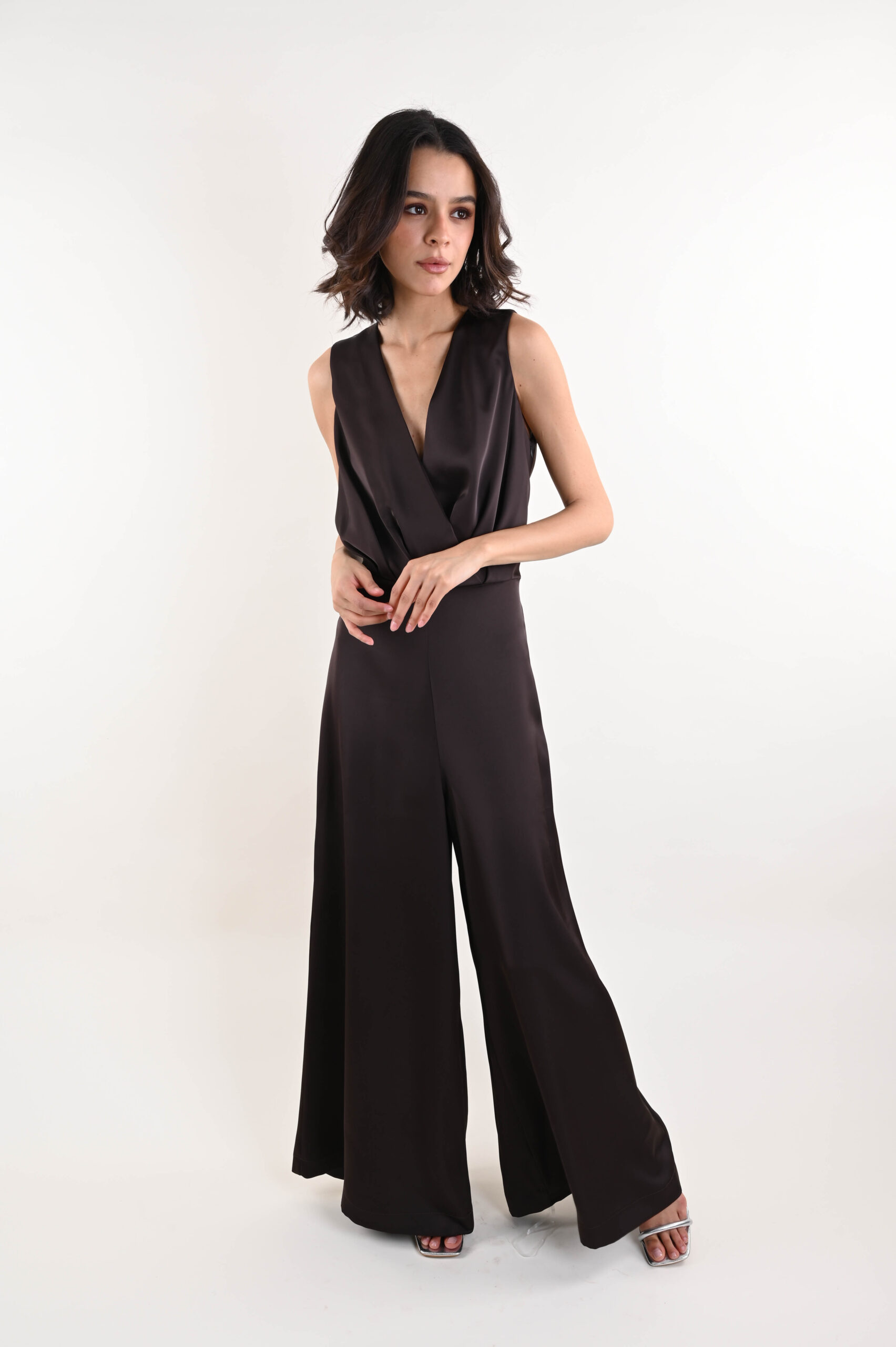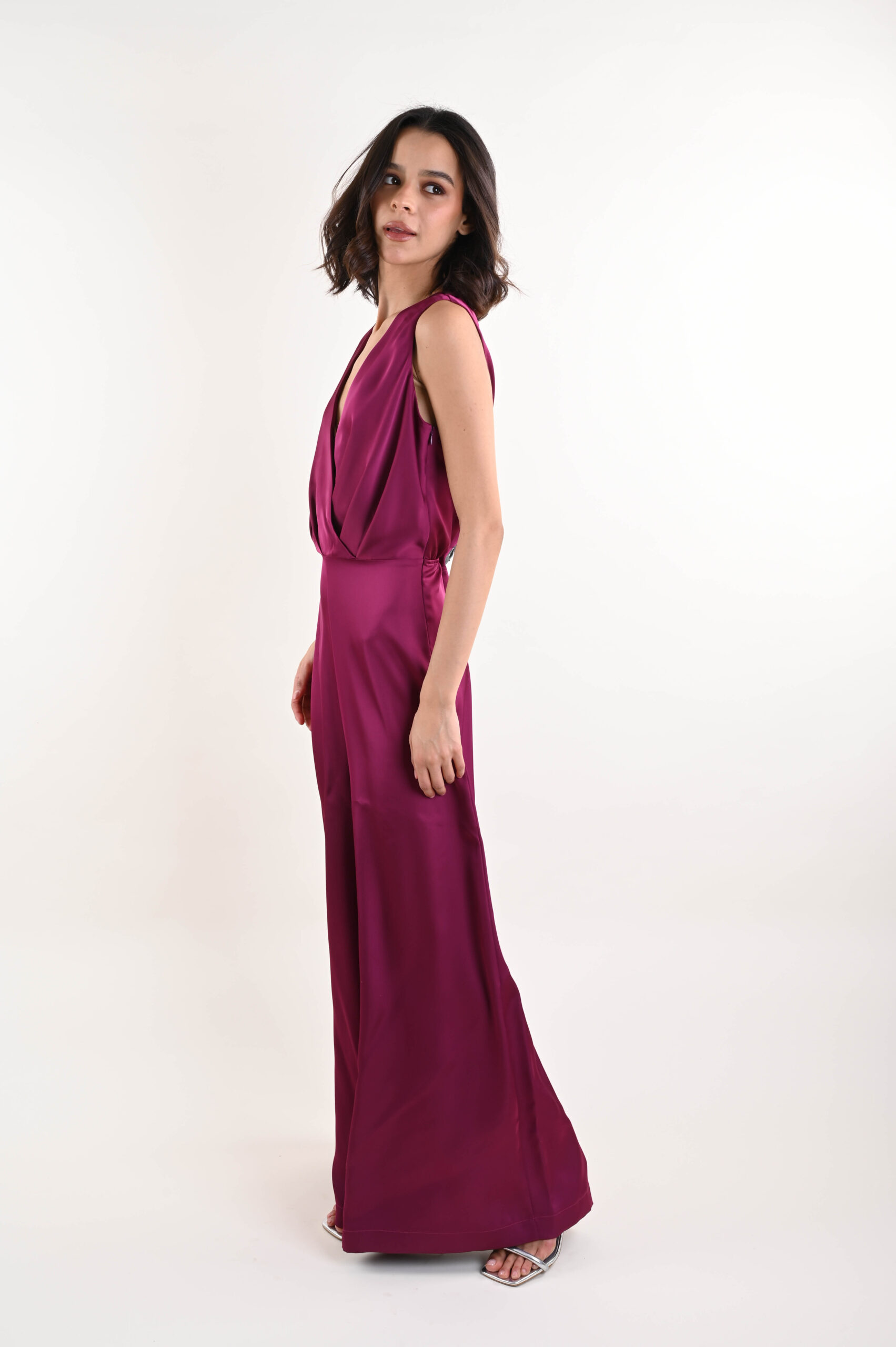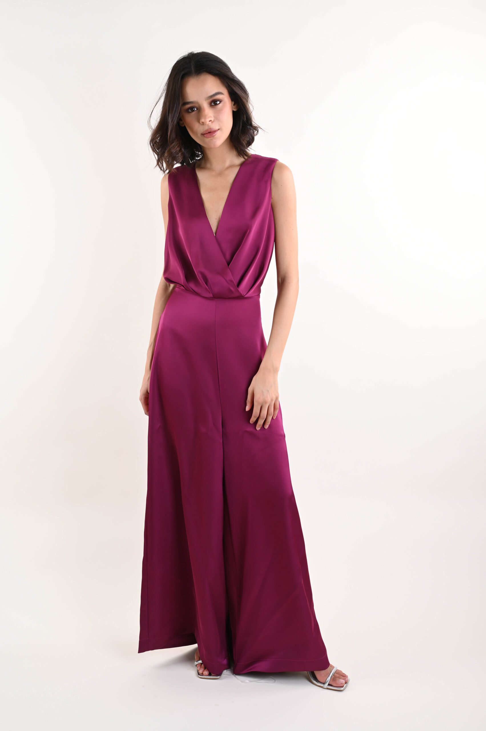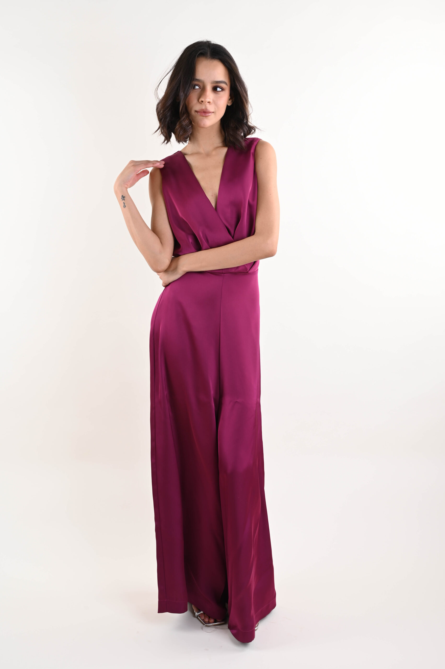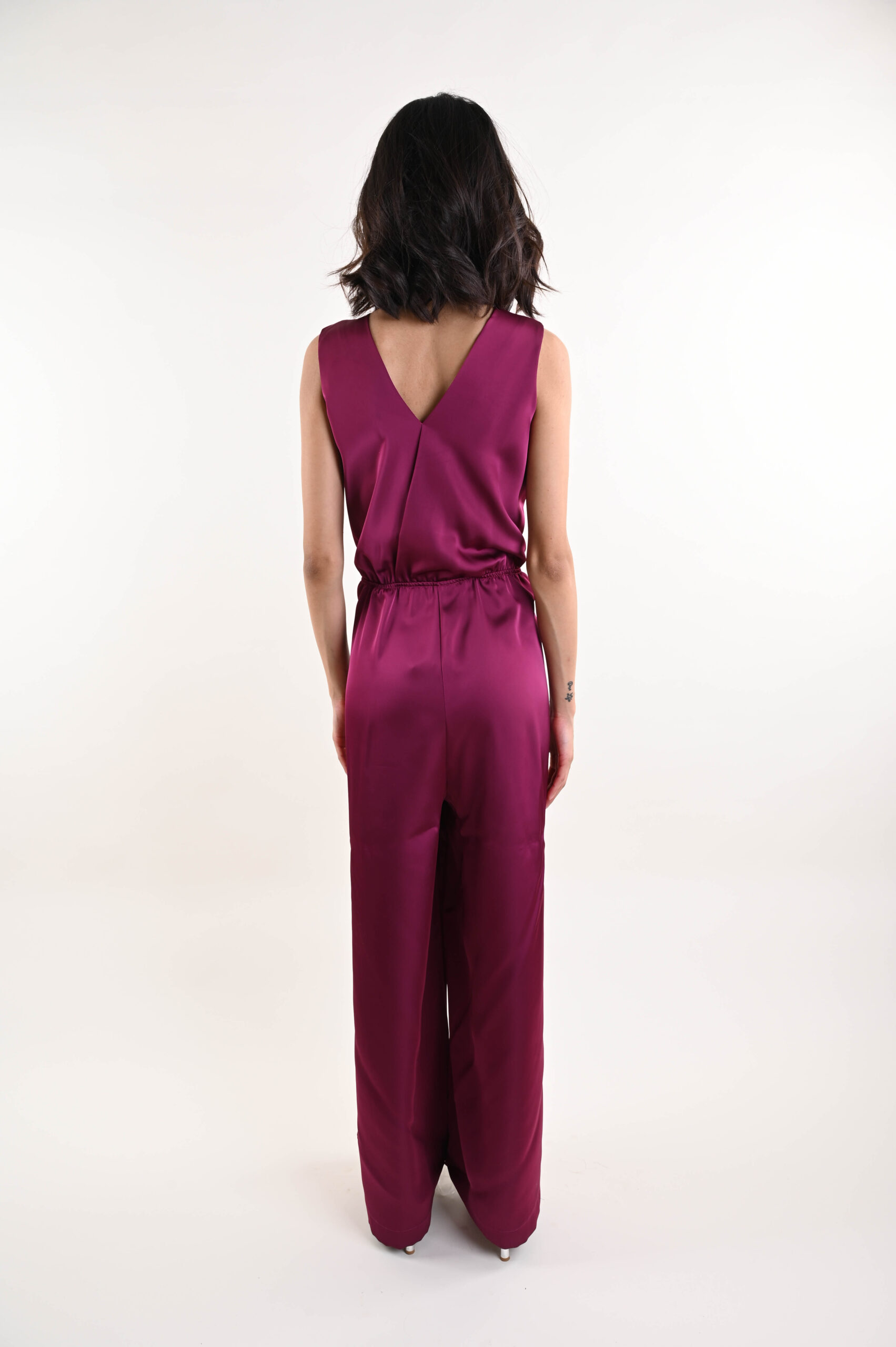 Tuta donna dal design essenziale e deciso, caratterizzata da scollo incrociato che valorizza il décolleté e da una linea pulita e contemporanea. Il modello presenta spalle strutturate, vita definita e gamba dritta che slancia la silhouette.