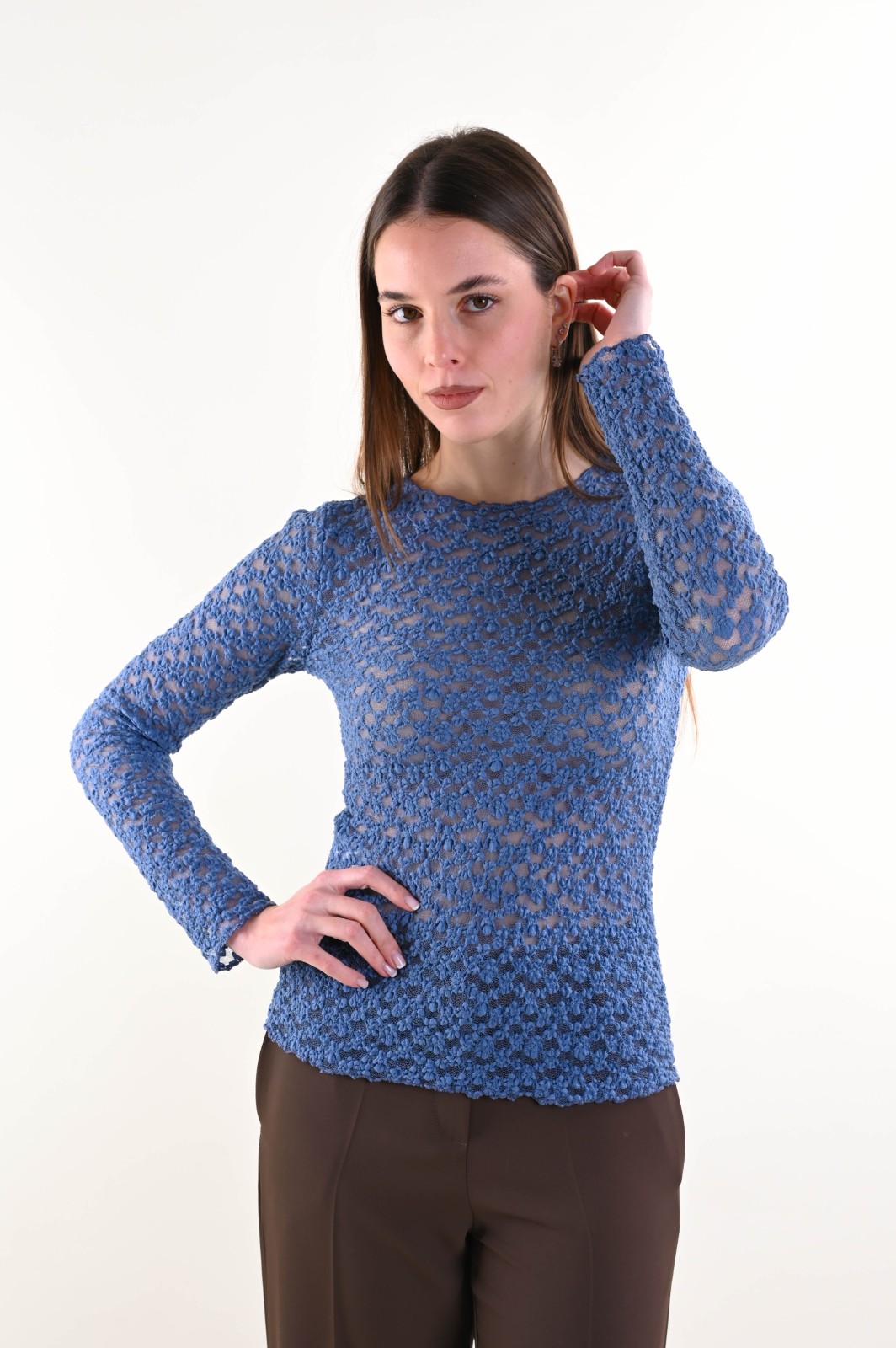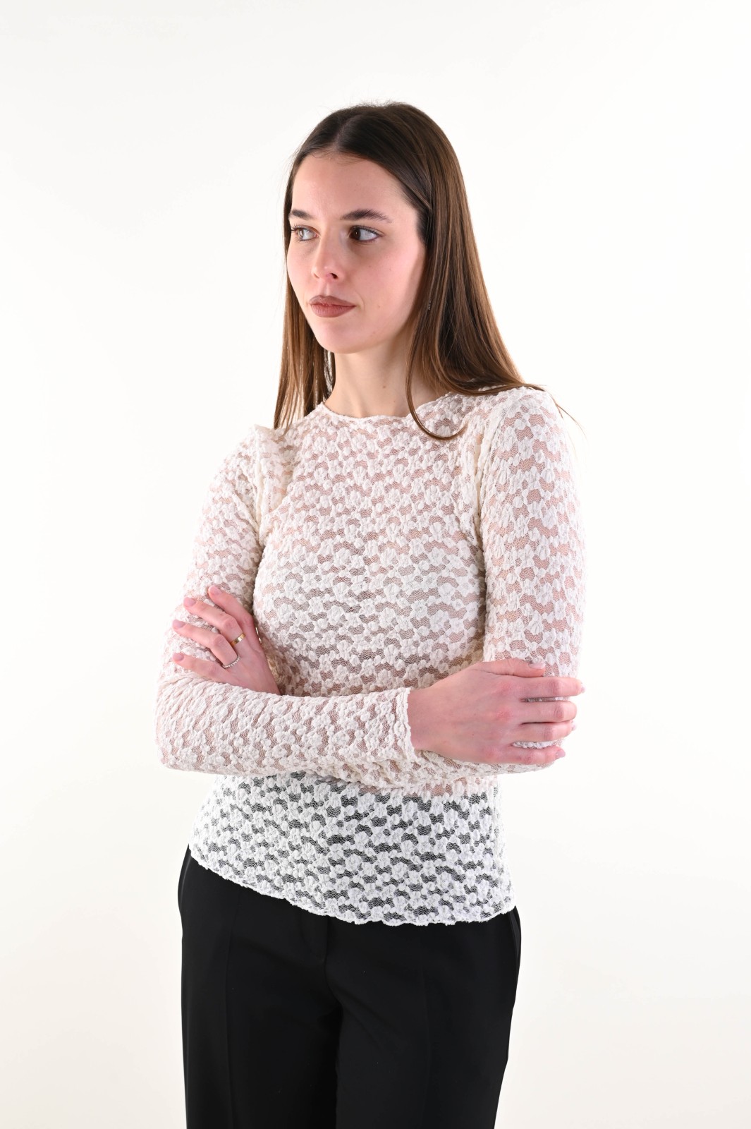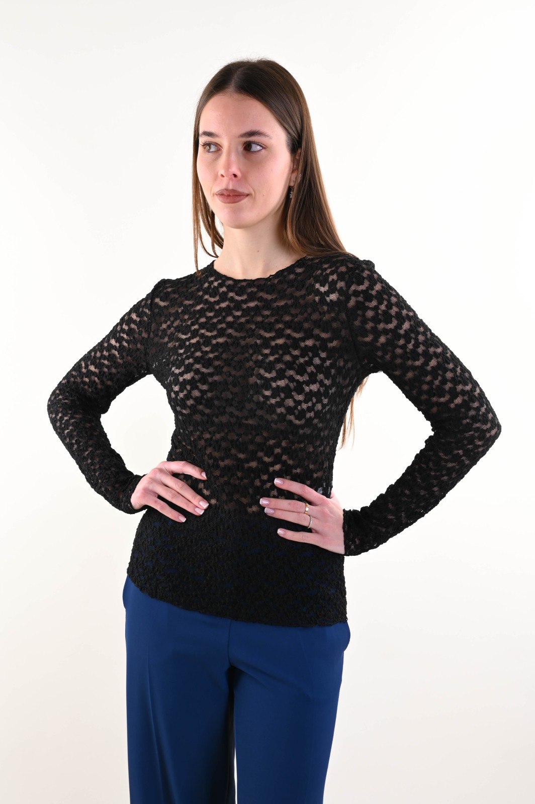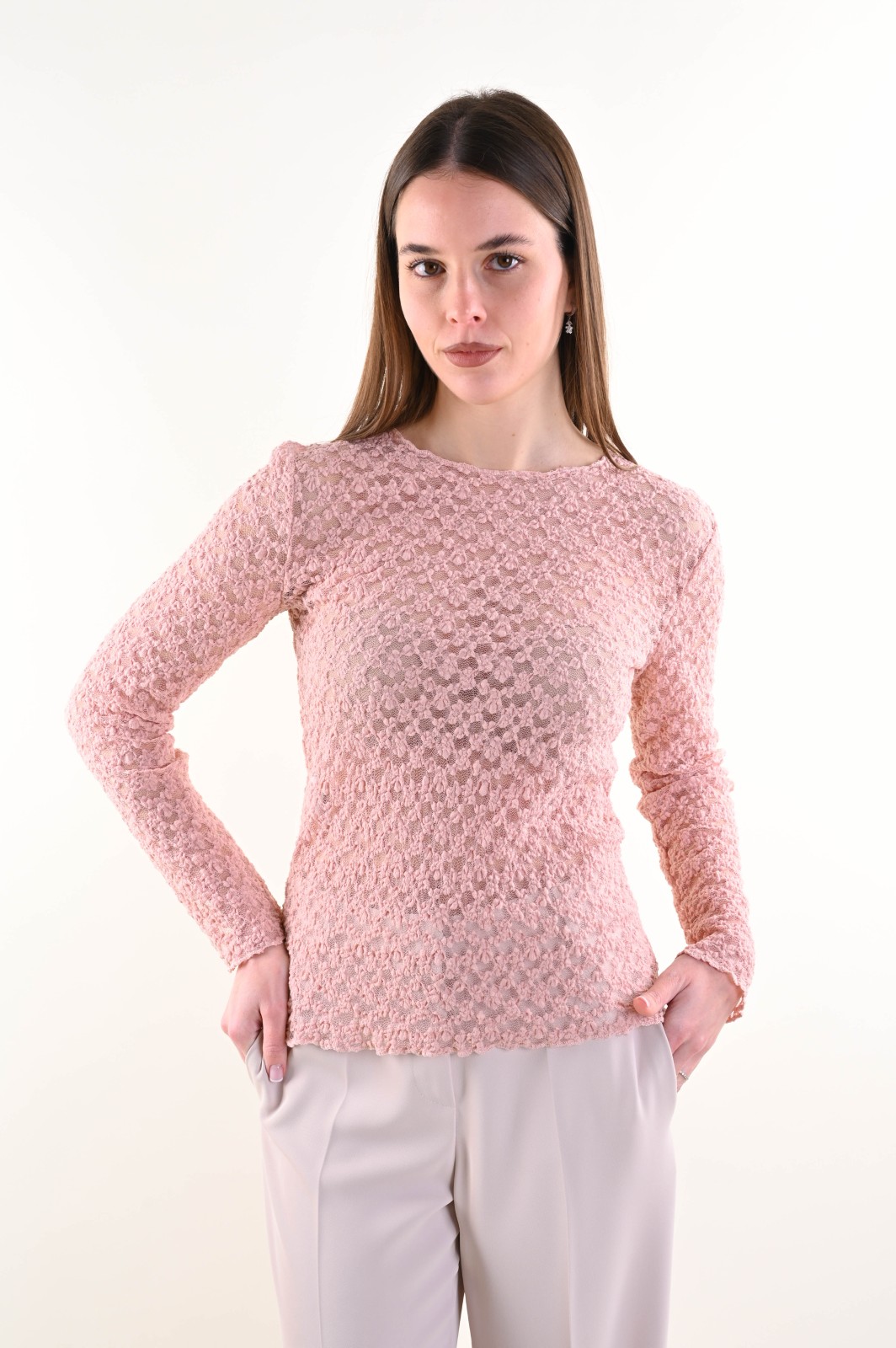 MAGLIA IN PIZZO A MANICHE LUNGHE