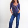 Maglia a manica 3/4 con scollo quadrato, dal design essenziale e femminile. Il taglio aderente valorizza la silhouette, mentre lo scollo dona un tocco moderno e versatile. Perfetta come base per look sia casual che più eleganti.