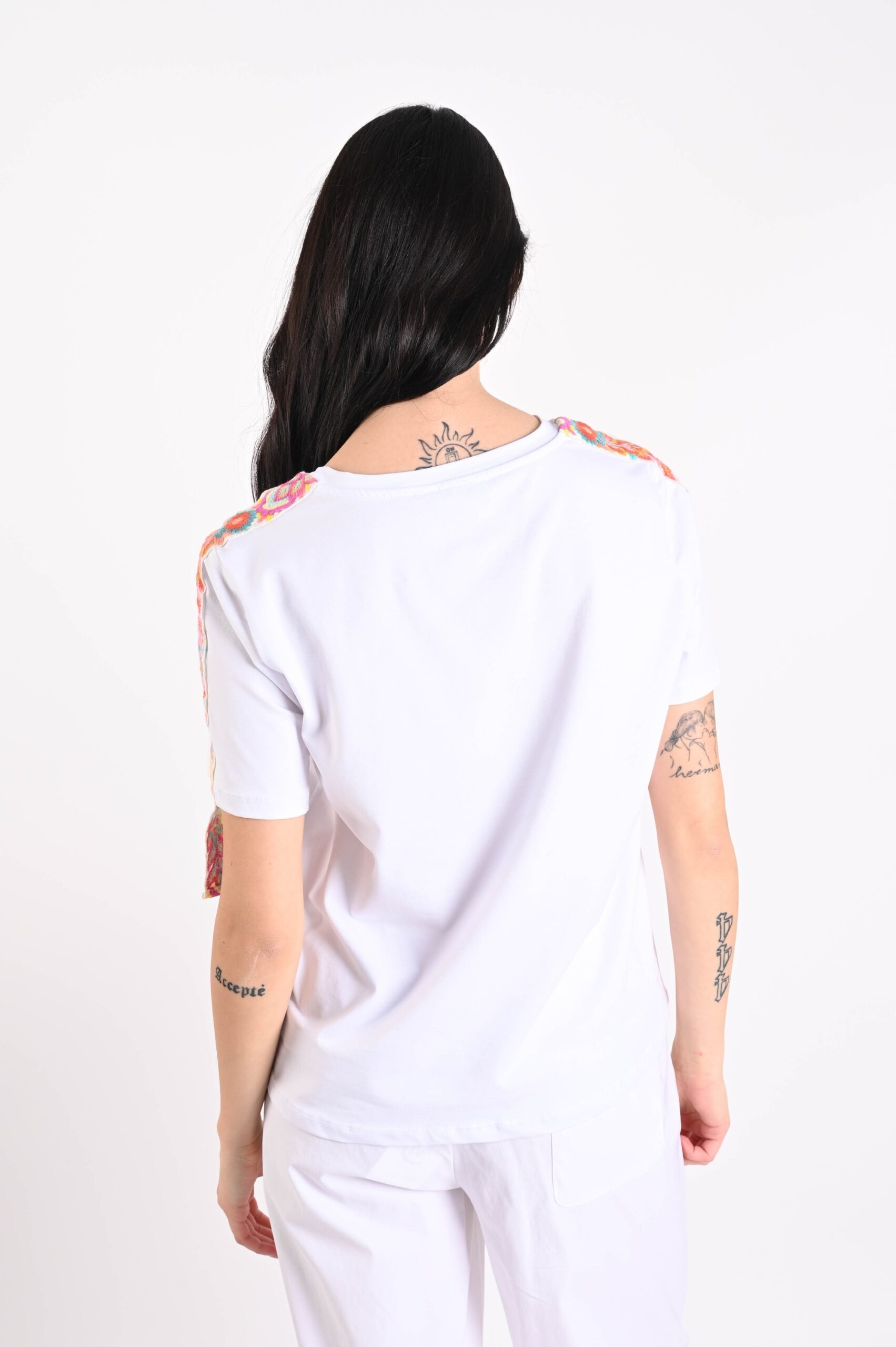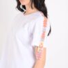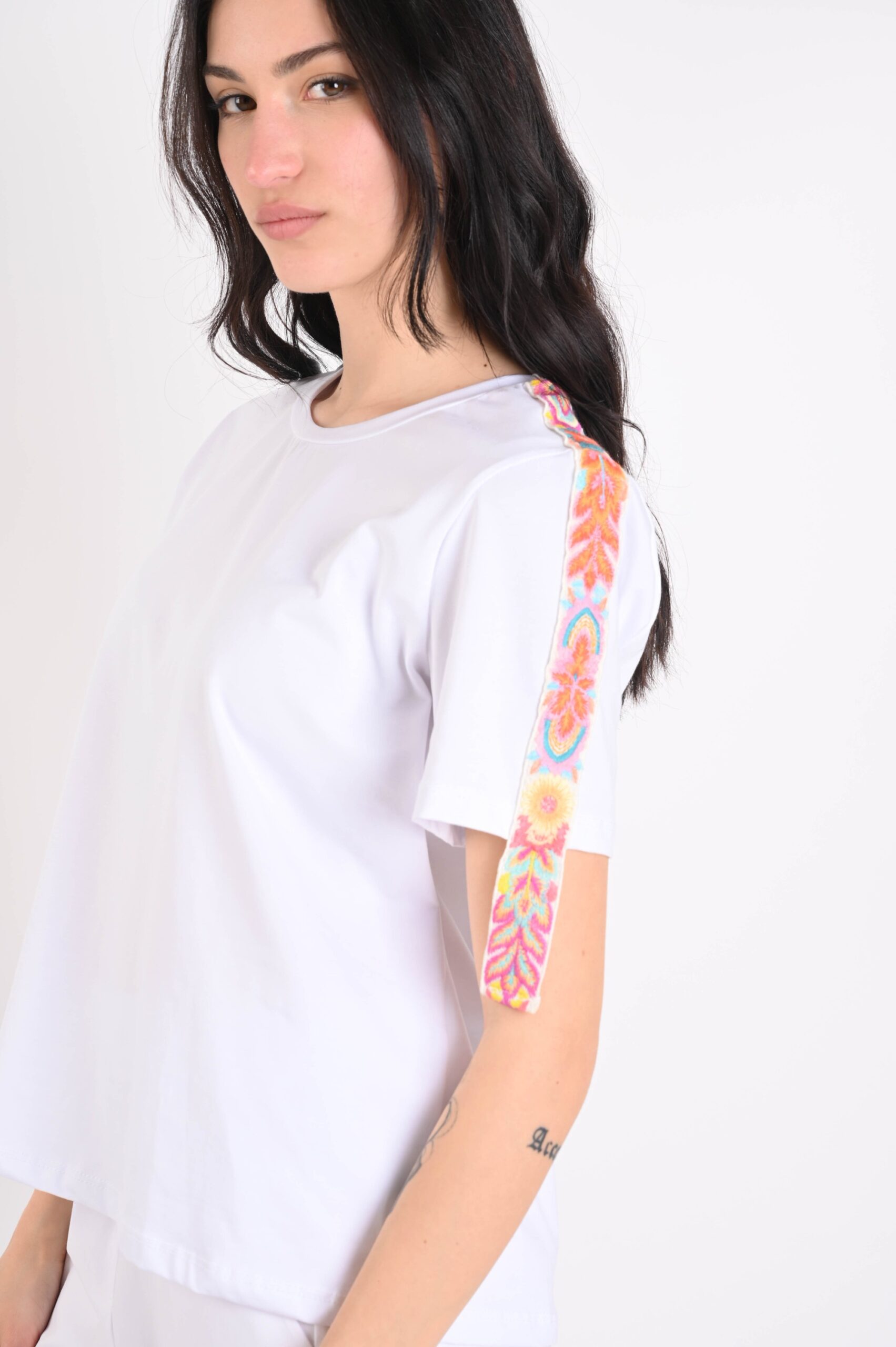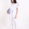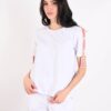 T-shirt con passamaneria inserita sulla spalla, fresca e contemporanea, perfetta per la stagione estiva. Realizzata in tessuto morbido e confortevole, garantisce una vestibilità piacevole e adatta all’uso quotidiano.