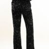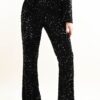 Pantaloni a zampa interamente ricoperti di paillettes con base in velluto, ideali per creare look da sera luminosi e sofisticati. La vestibilità slanciata valorizza la figura, mentre il design scintillante dona movimento e carattere ad ogni passo. Perfetti per eventi, party o serate speciali, questi pantaloni con paillettes sono un capo chiave per un outfit elegante e d’effetto.