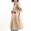 Trench da donna realizzato in tessuto leggero e confortevole, ideale per la mezza stagione. La linea fluida e le spalle morbide garantiscono una vestibilità naturale e piacevole da indossare durante tutta la giornata. Il modello presenta colletto classico, chiusura frontale con bottoni e tasche laterali funzionali.