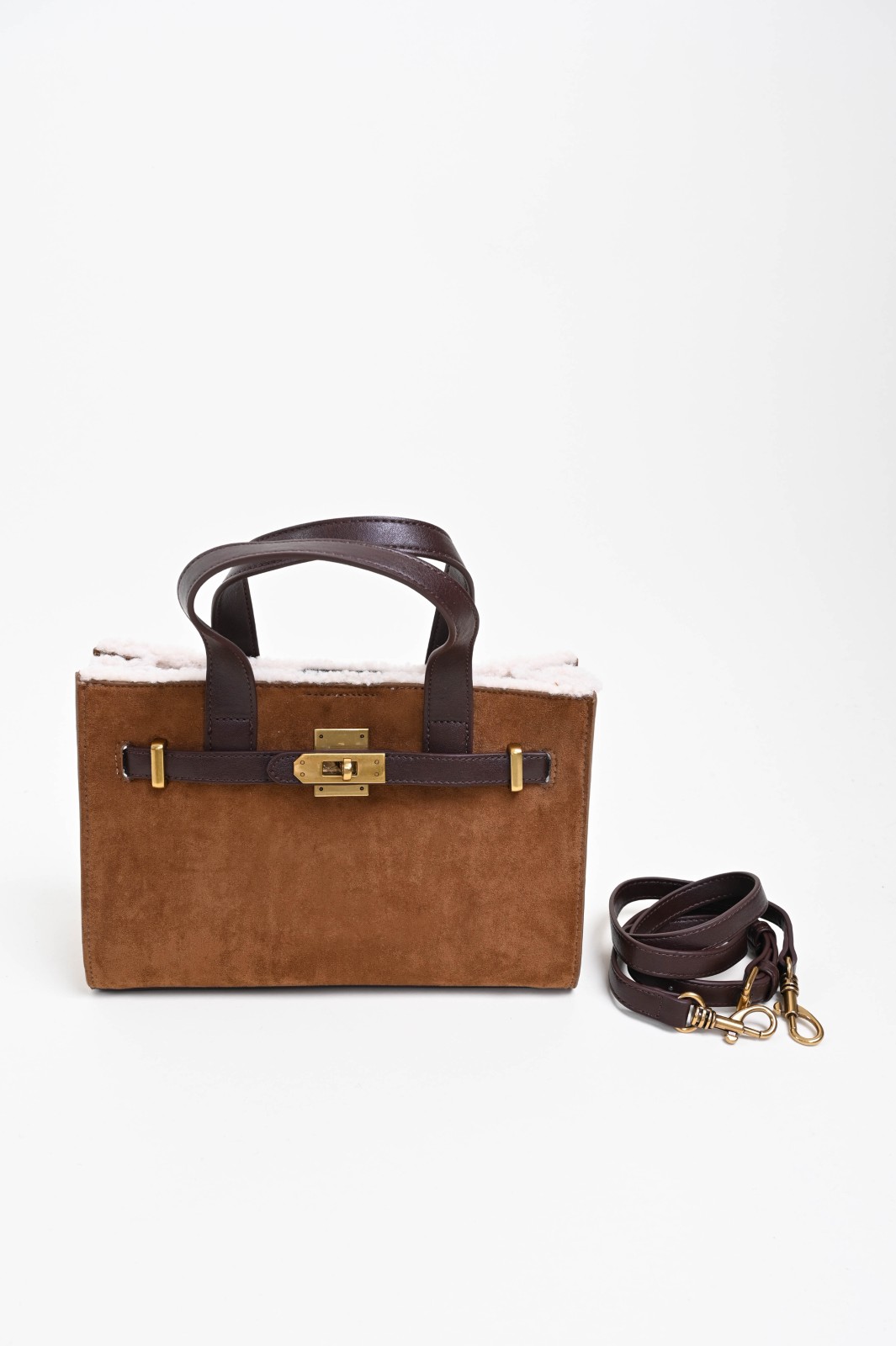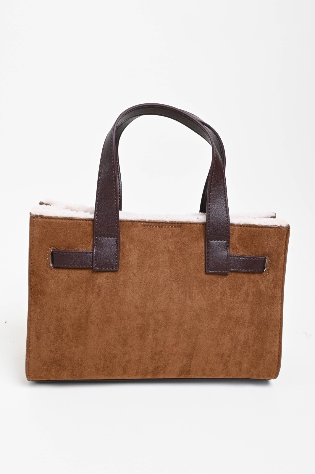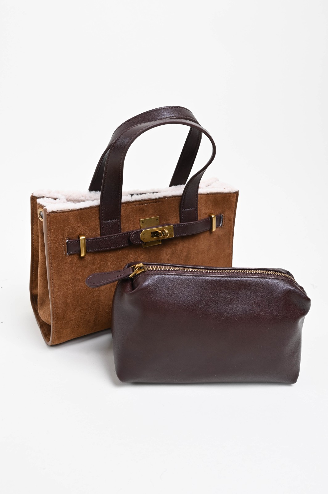 MINI BAG IN ECOPELLE SCAMOSCIATA CON INTERNO SHEARLING E POCHETTE COORDINATA