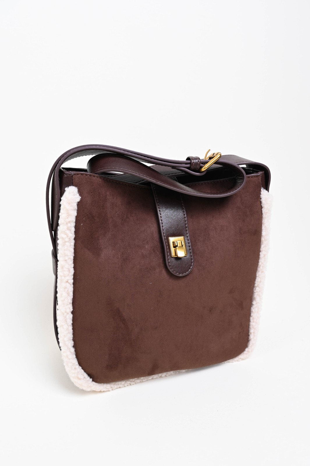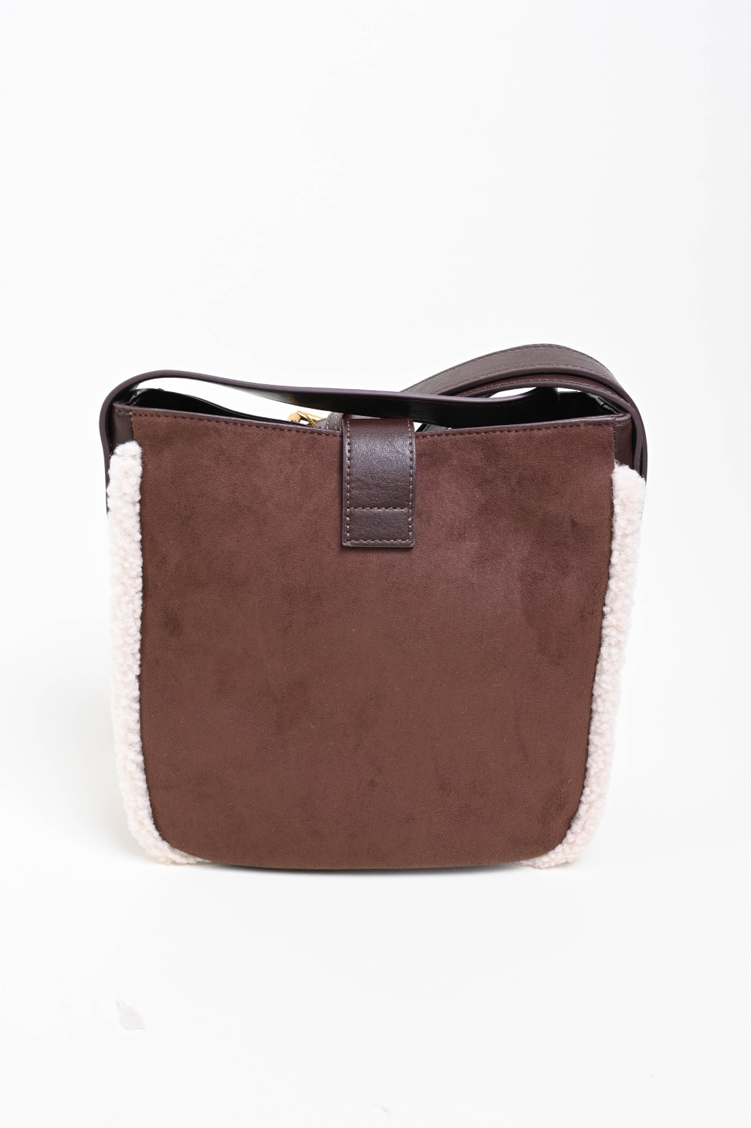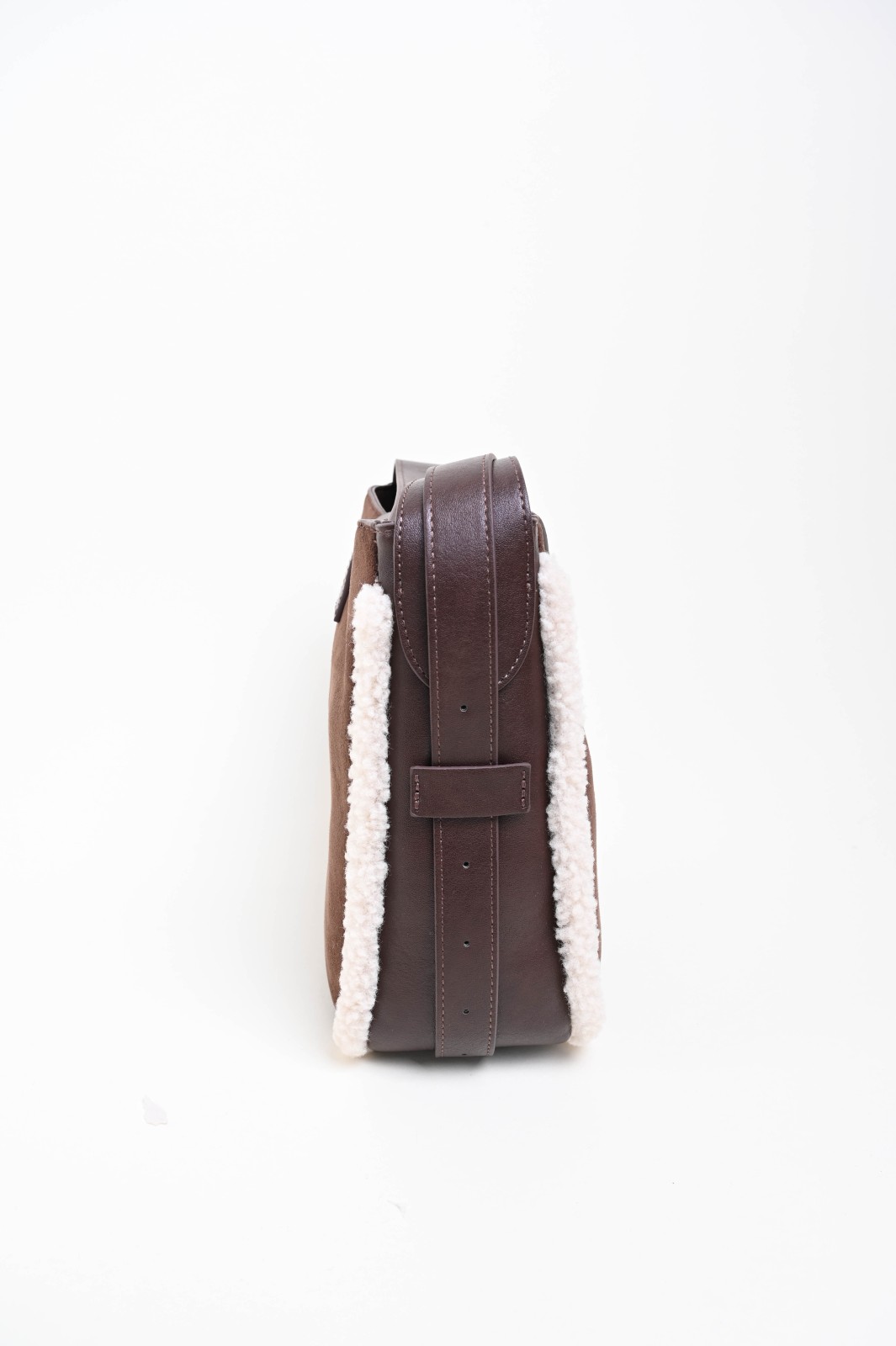 BORSA A TRACOLLA IN SUEDE CON BORDI IN SHEARLING