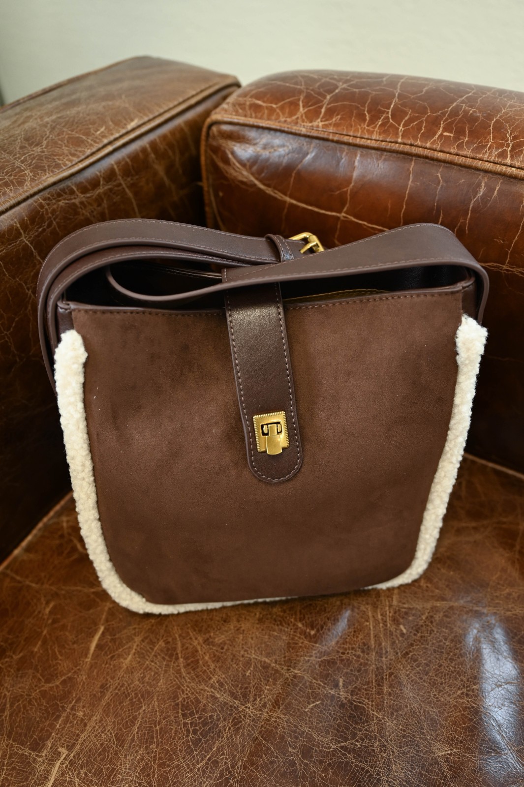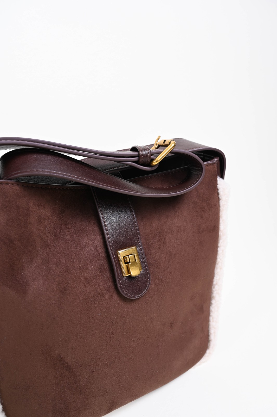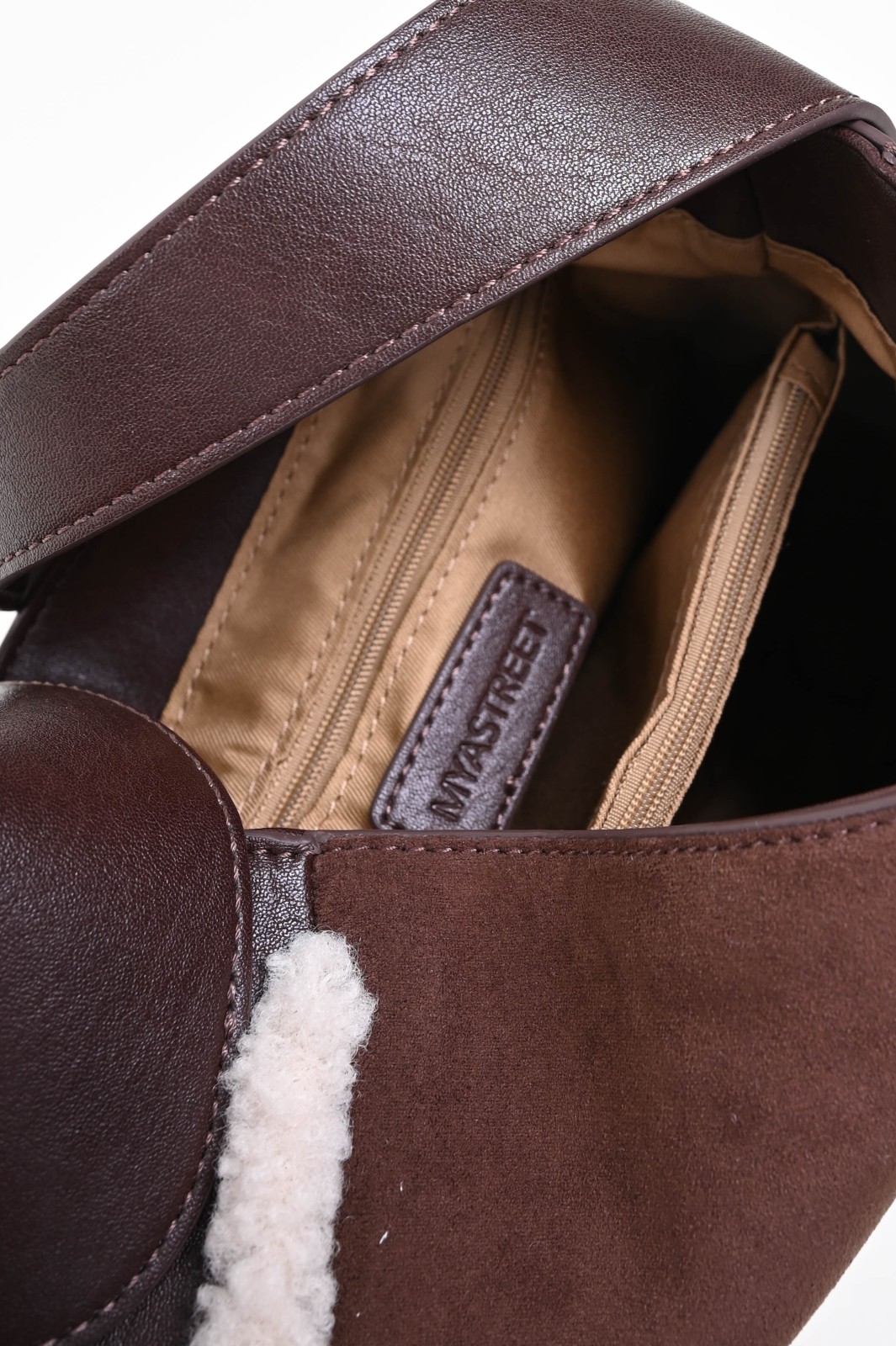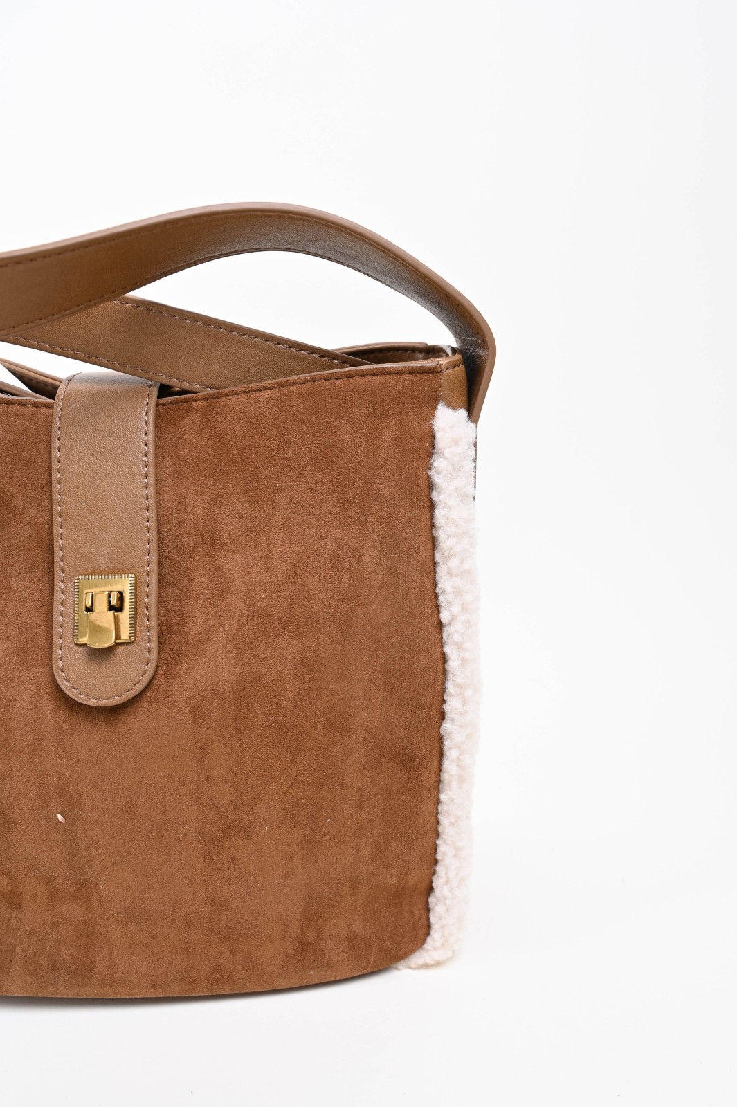 BORSA A TRACOLLA IN SUEDE CON BORDI IN SHEARLING