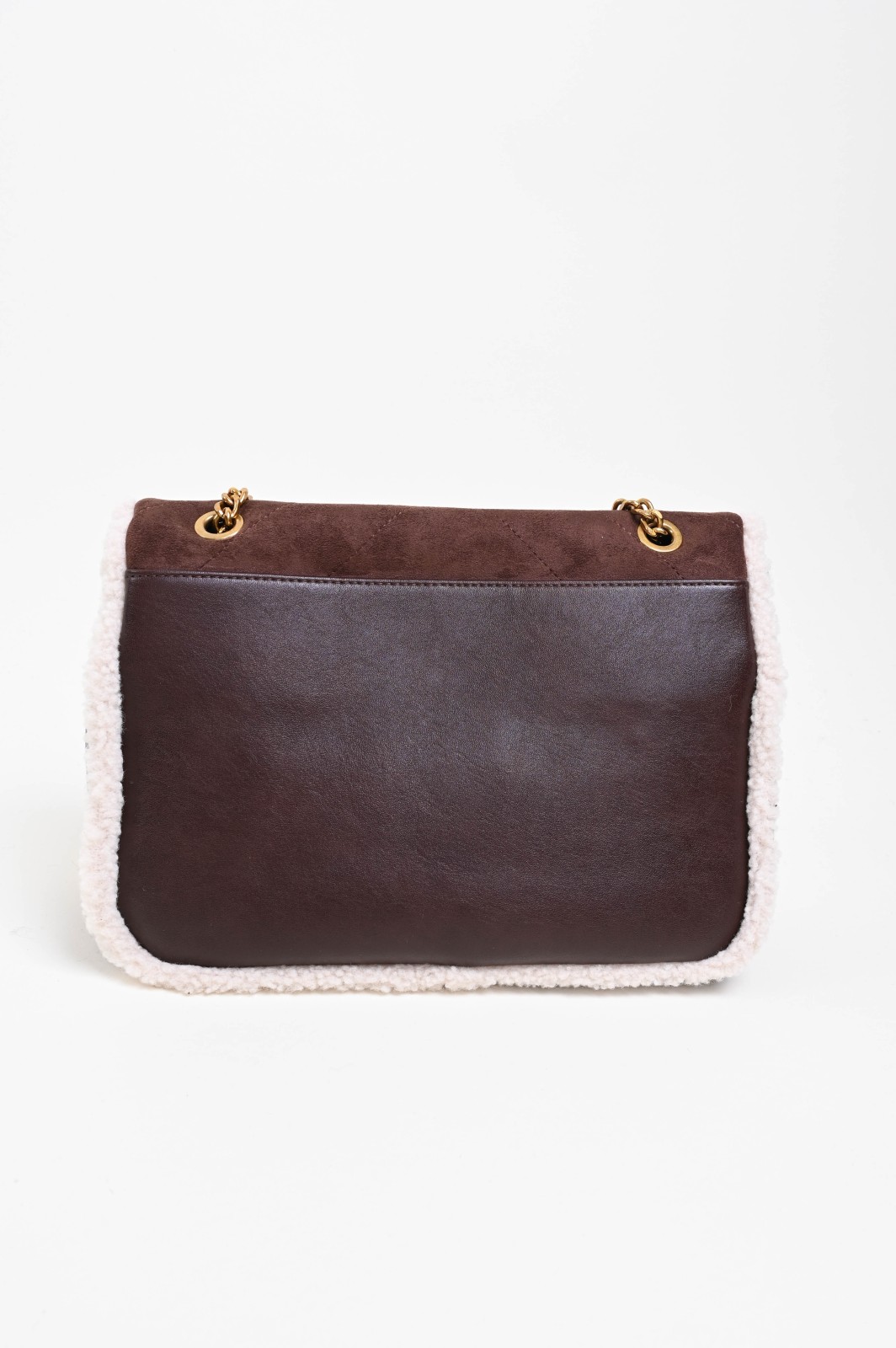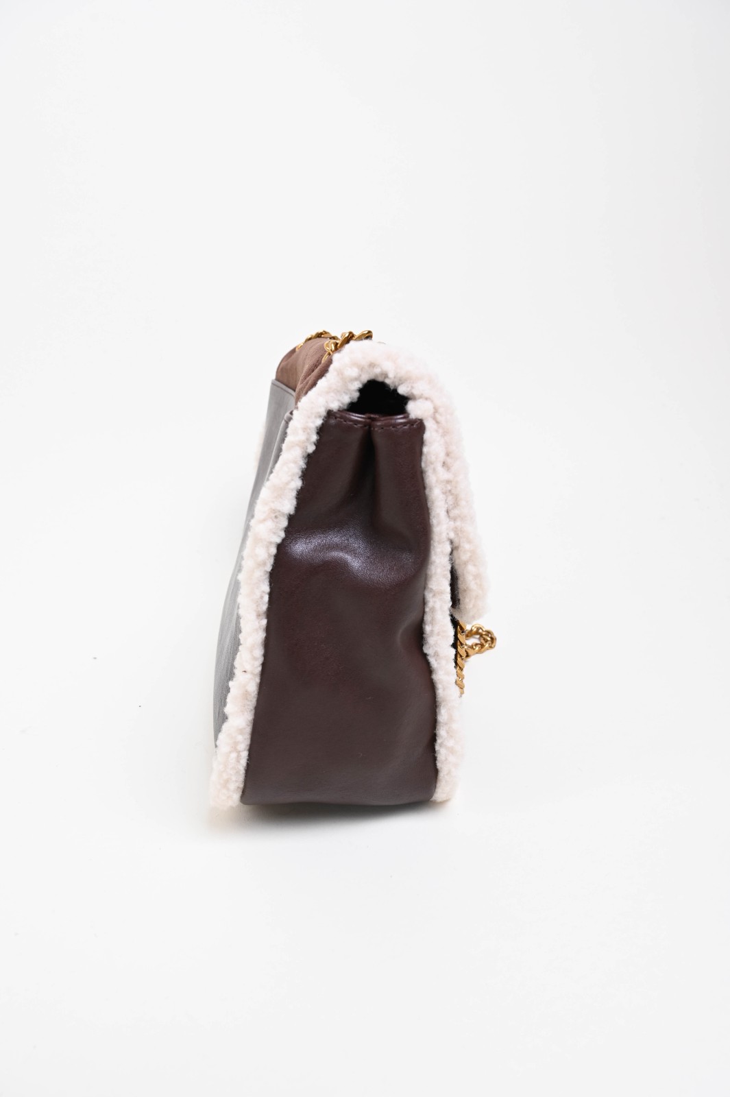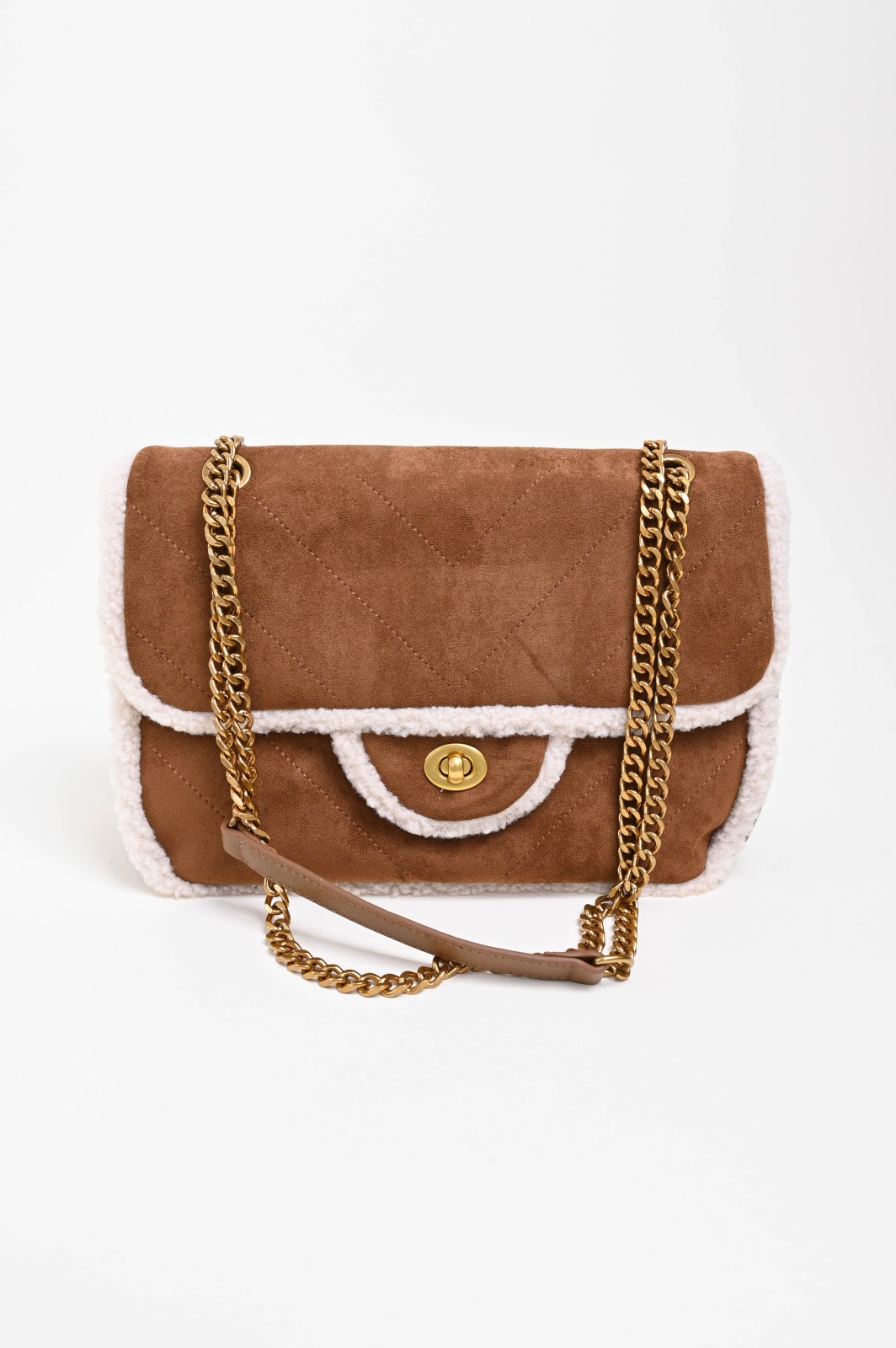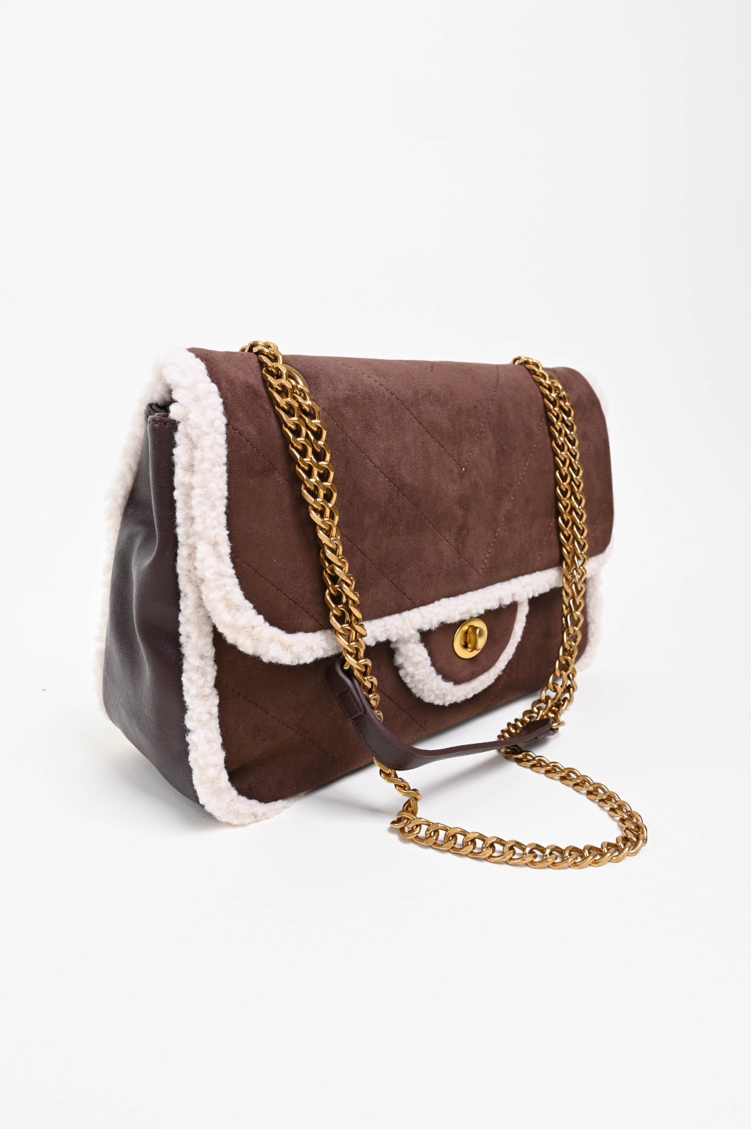 FLAP BAG SCAMOSCIATA CON BORDO SHEARLING E CATENA DORATA