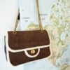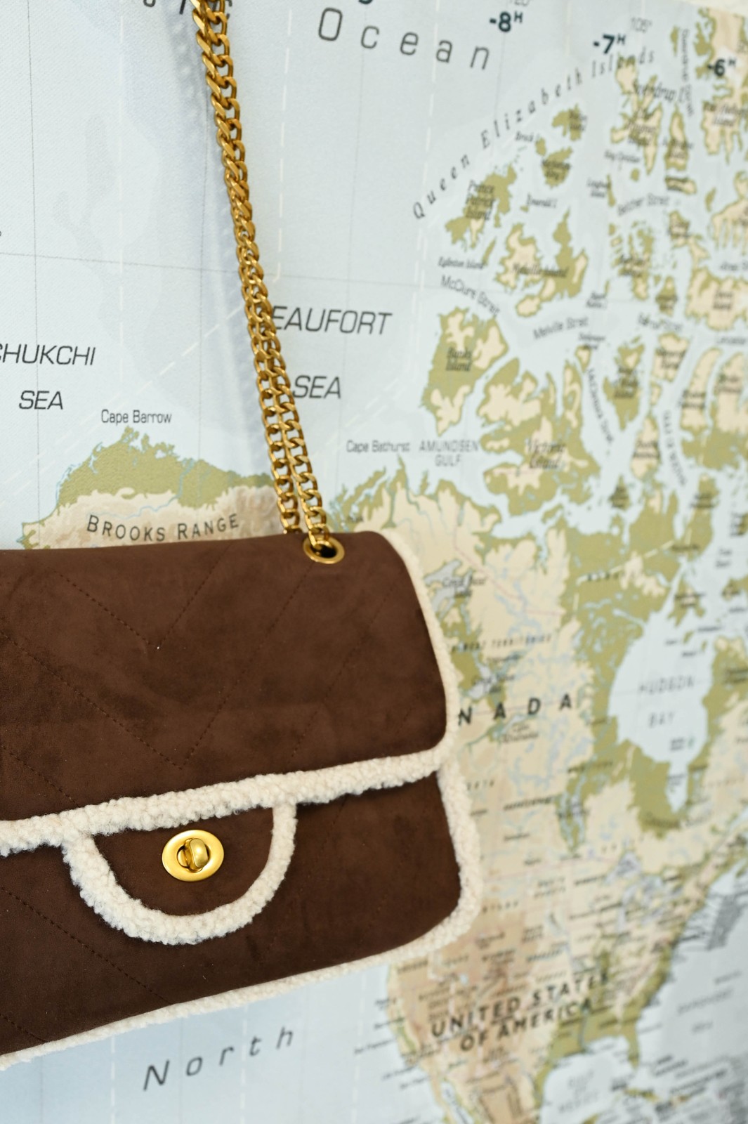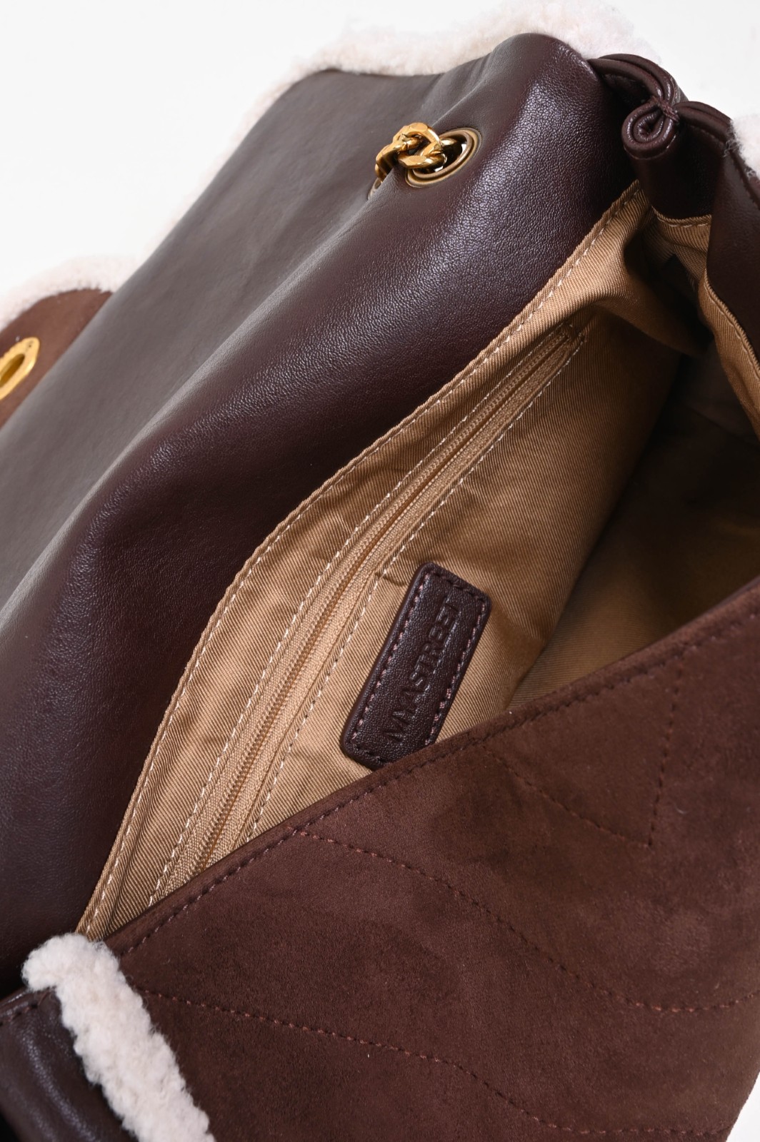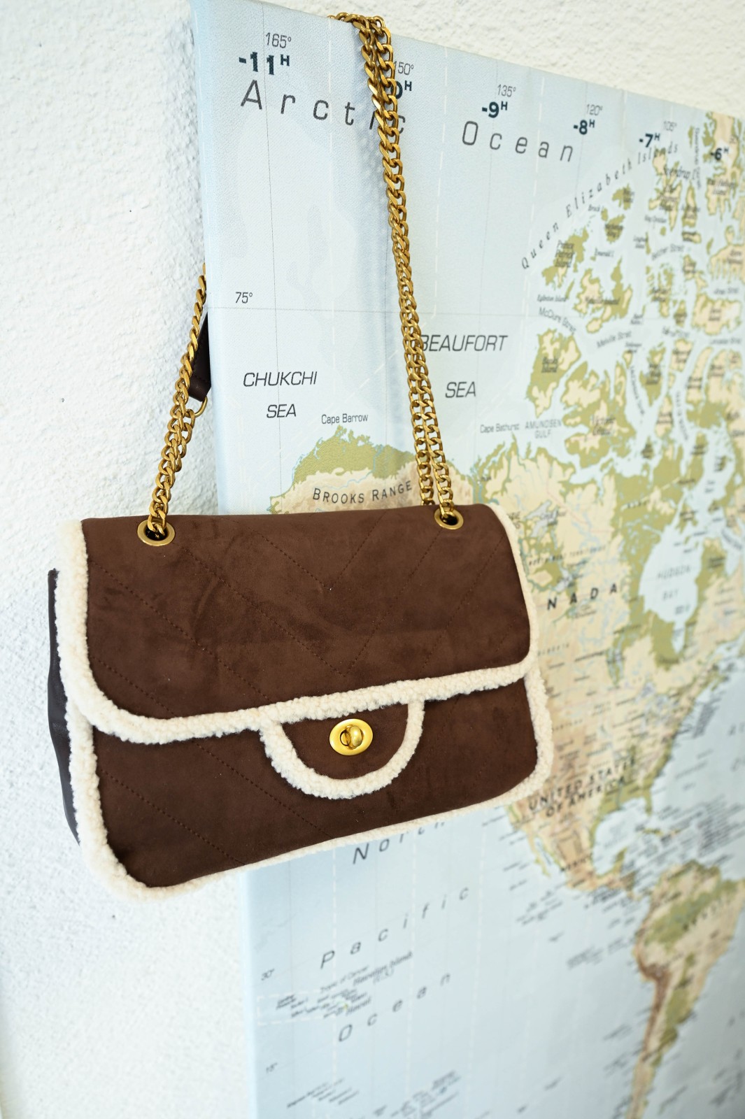 FLAP BAG SCAMOSCIATA CON BORDO SHEARLING E CATENA DORATA