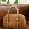 Borsa a mano compatta e strutturata, realizzata in morbido materiale effetto suede con finiture in similpelle liscia. Il design presenta linee pulite e dettagli verticali decorativi che esaltano la forma rettangolare. I manici corti e arrotondati, arricchiti da inserti metallici dorati, aggiungono un tocco sofisticato e contemporaneo. Perfetta per completare look eleganti o casual chic, questa borsa è l’accessorio ideale per chi cerca uno stile senza tempo con un’eleganza discreta.
