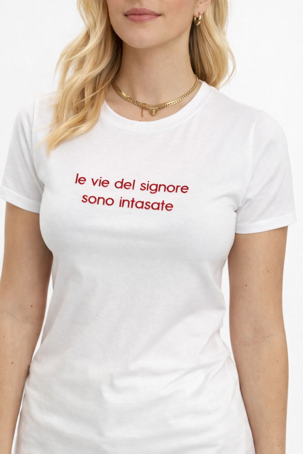 T-SHIRT RICAMO “LE VIE DEL SIGORE SONO INTASATE”