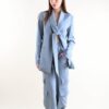 La cintura integrata permette di definire il punto vita, offrendo diverse possibilità di styling: indossata annodata per un effetto più femminile o lasciata morbida per un look essenziale e contemporaneo. Le maniche lunghe e le tasche laterali aggiungono funzionalità senza rinunciare allo stile.