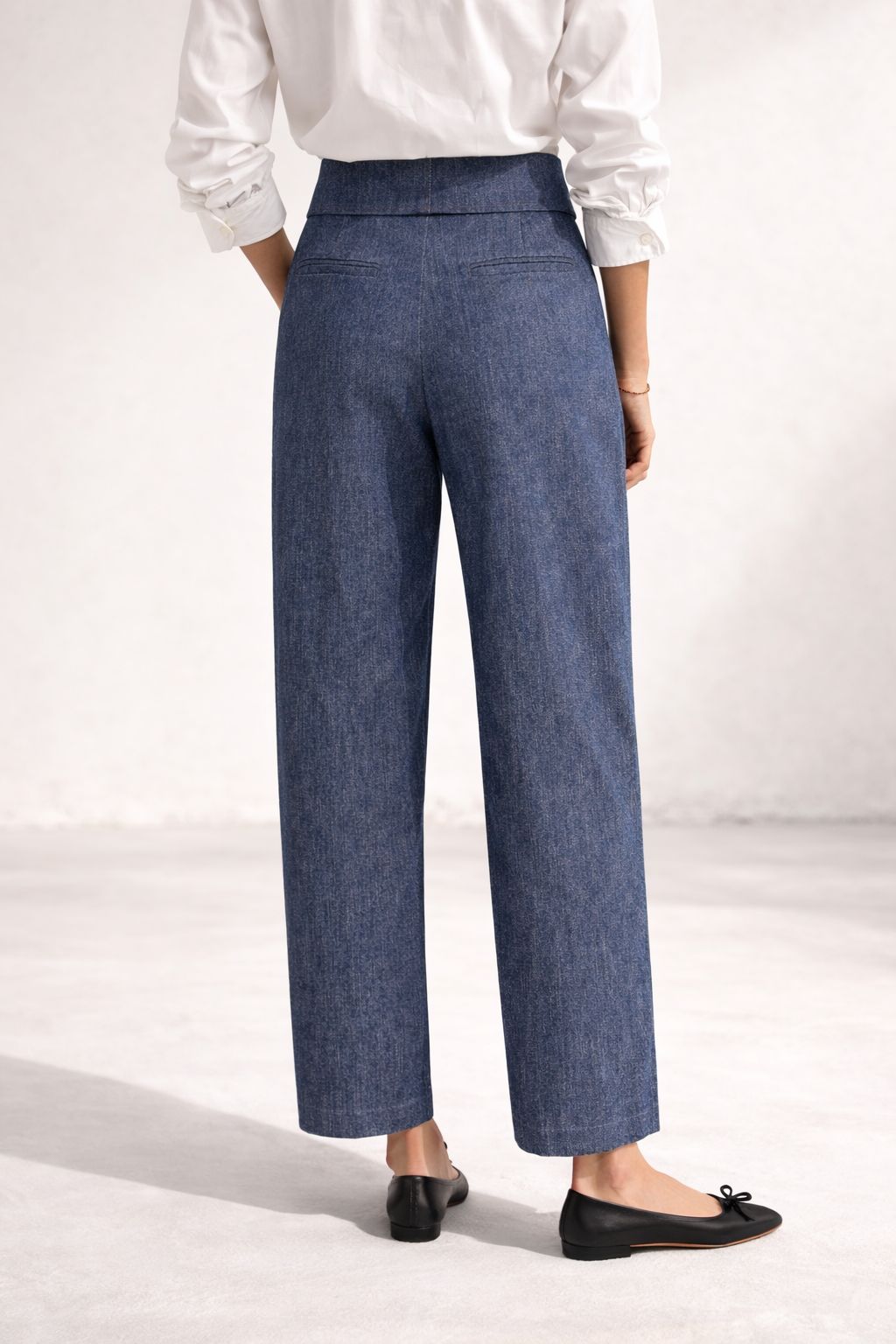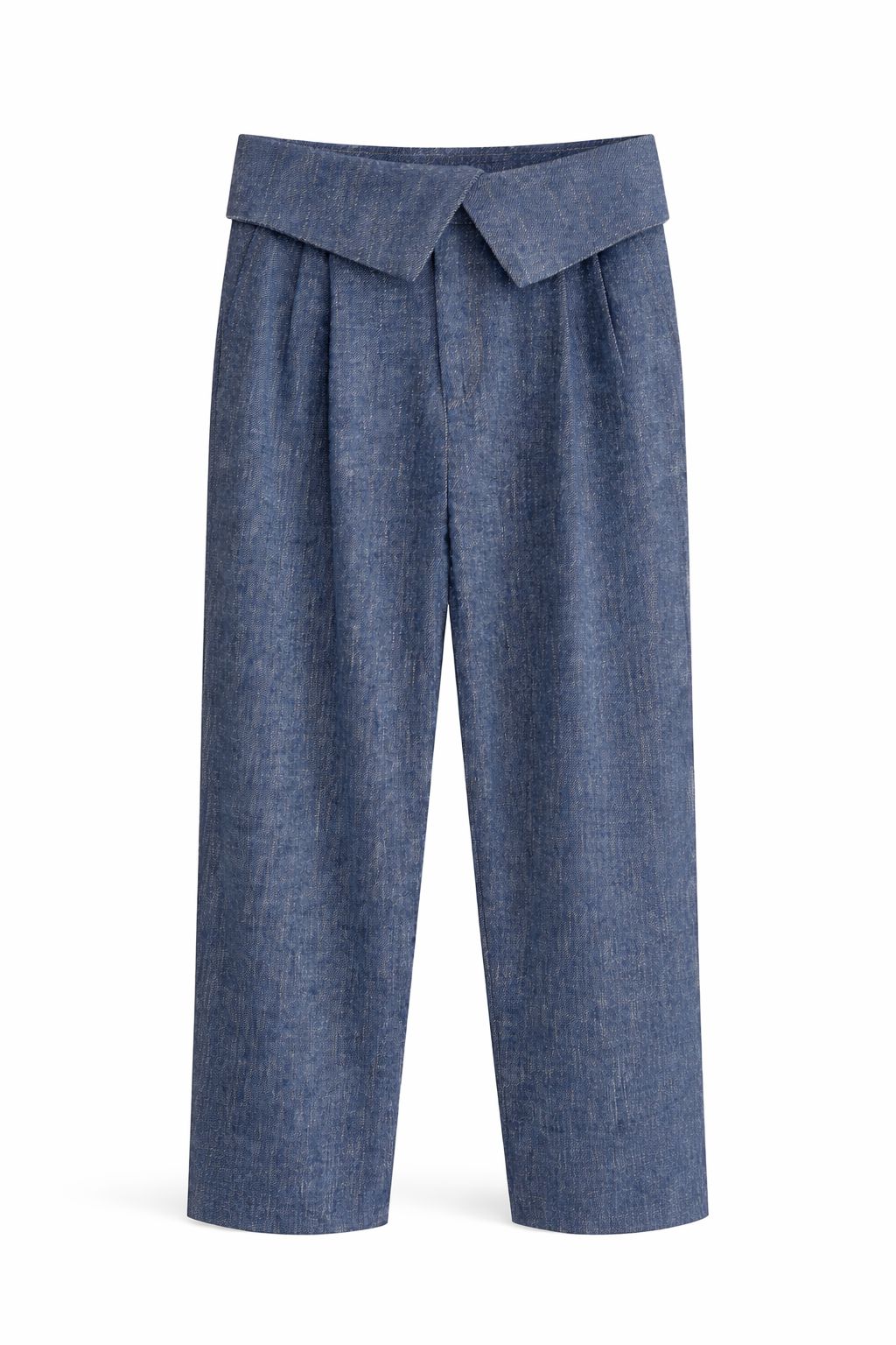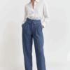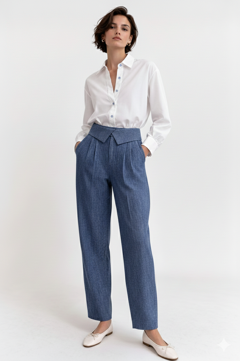Pantalone dal taglio ampio e fluido, caratterizzato da una chiusura sovrapposta che valorizza il punto vita con un dettaglio strutturato e contemporaneo. Le leggere pieghe frontali donano movimento e slancio alla silhouette, mentre la linea morbida della gamba assicura comfort e versatilità. Un modello sofisticato e femminile, perfetto per creare look eleganti ma disinvolti.